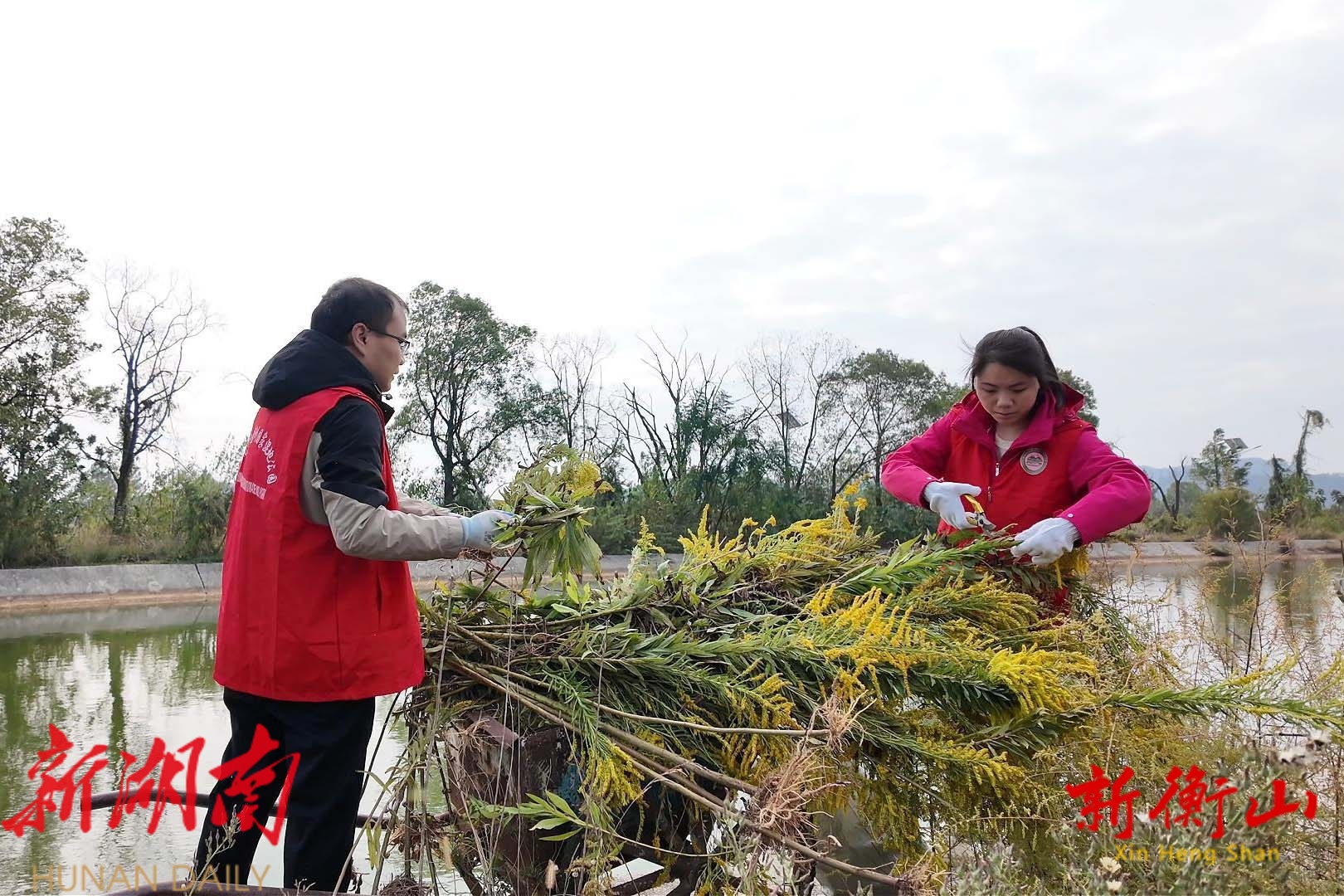 衡山萱洲国家湿地公园开展“加拿大一枝黄花”专项清除行动