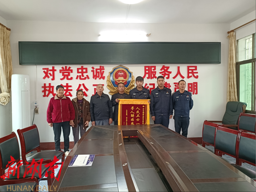 10月27日上午,获救老人的家人将一面写有“人民卫士一心为民 寻人解困恩情四海”的锦旗送到洋市派出所,表达他们对公安民警的诚挚谢意。