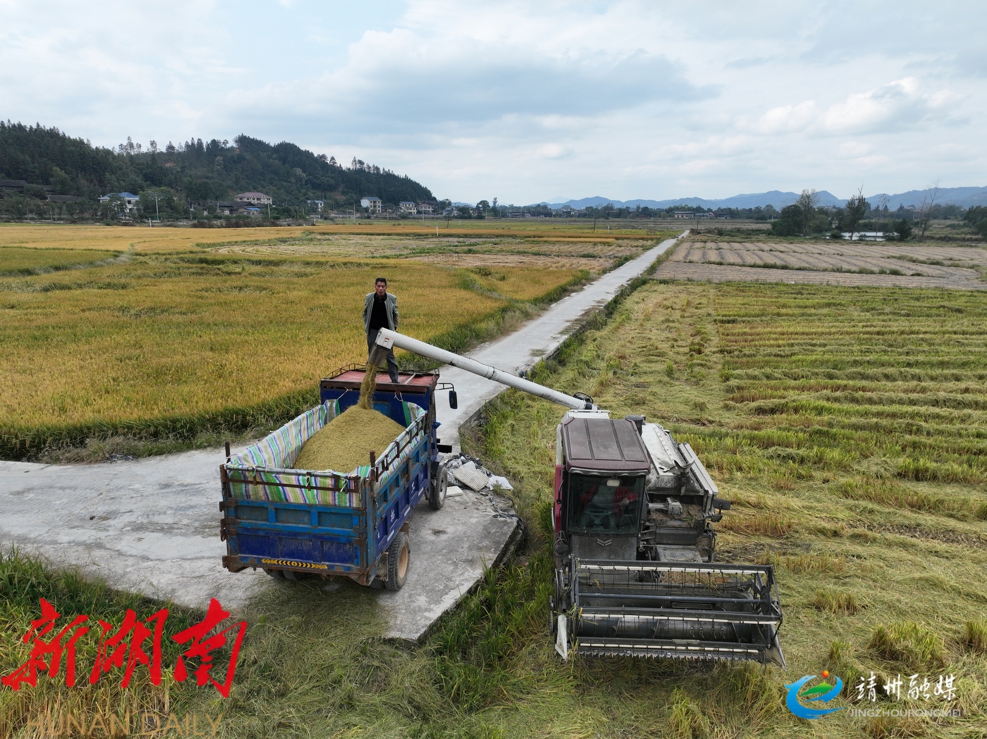 走进燎原村种植大户李运松、李开发的田地里,金黄稻穗压弯稻秆,收割机穿梭其中快速收割、脱粒,稻谷经输送装置直接装入卡车。“以前我只种烟叶,怕烟叶收完赶不上晚稻生长期,今年我第一次种就能有这收成,还是很满意的!”李运松说。
