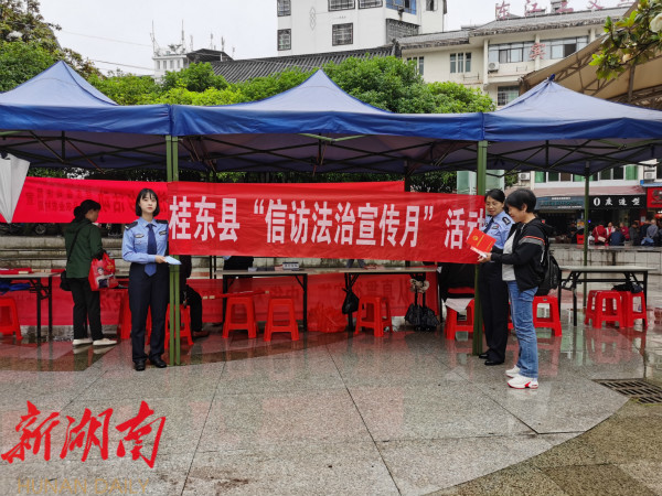 桂东县融媒体中心5月20日讯(通讯员 罗映)为进一步贯彻落实政法队伍教育整顿工作和党史学习教育、“我为群众办实事“等主题实践活动。5月18日,桂东县公安局法制大队冒雨在县城的罗宵广场开展了“信访法治宣传月暨《湖南省信访条例》修订实施15周年”宣传活动。