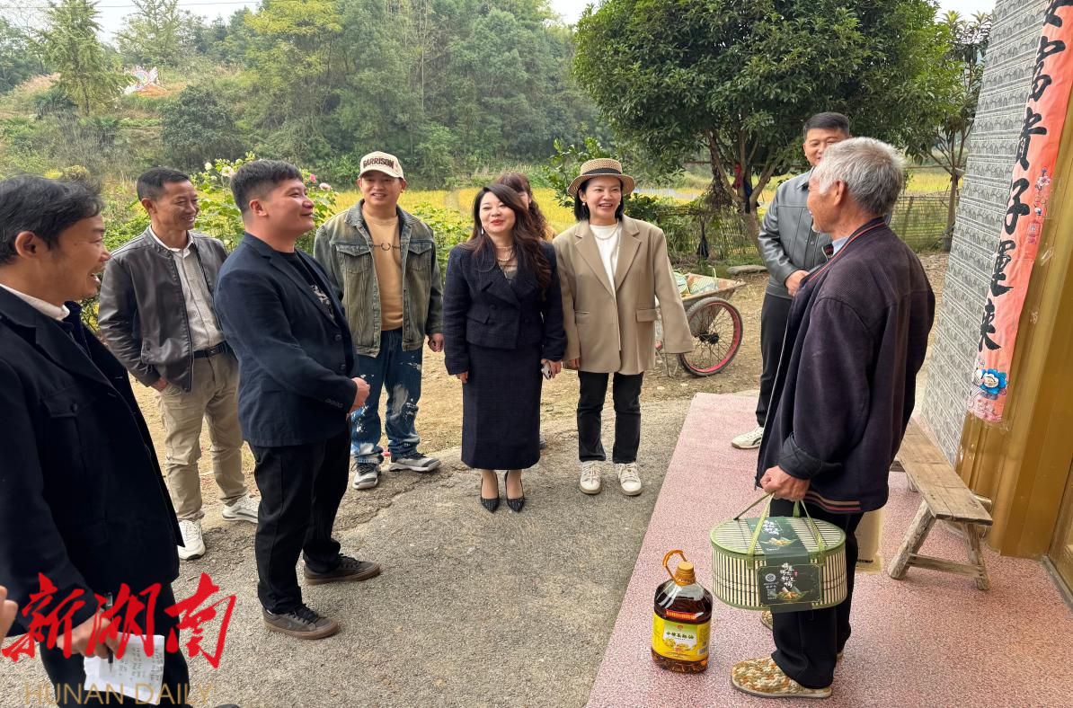 湖南日报·新湖南客户端10月28日讯(通讯员 范沣霈)10月28日,零陵区石岩头镇周家村的庭院里暖意融融,该镇乡贤联谊会牵头开展“秋日送暖 情系乡邻”帮扶活动。湖南五色米农业发展有限公司董事长唐瑶、佛山市顺德区好合木服饰有限公司创始人兼总经理唐瑞霞带头参与,与镇村干部一同满载食用油、大米和新鲜粽子,走进村内监测户与脱贫户家中,用乡土温情筑牢民生保障网。