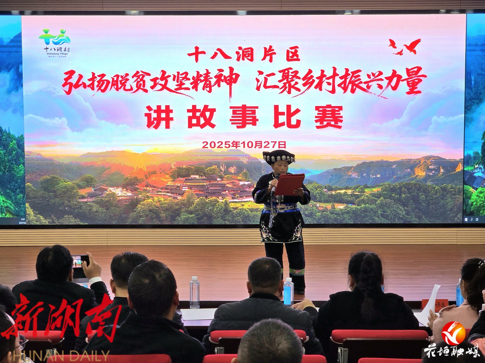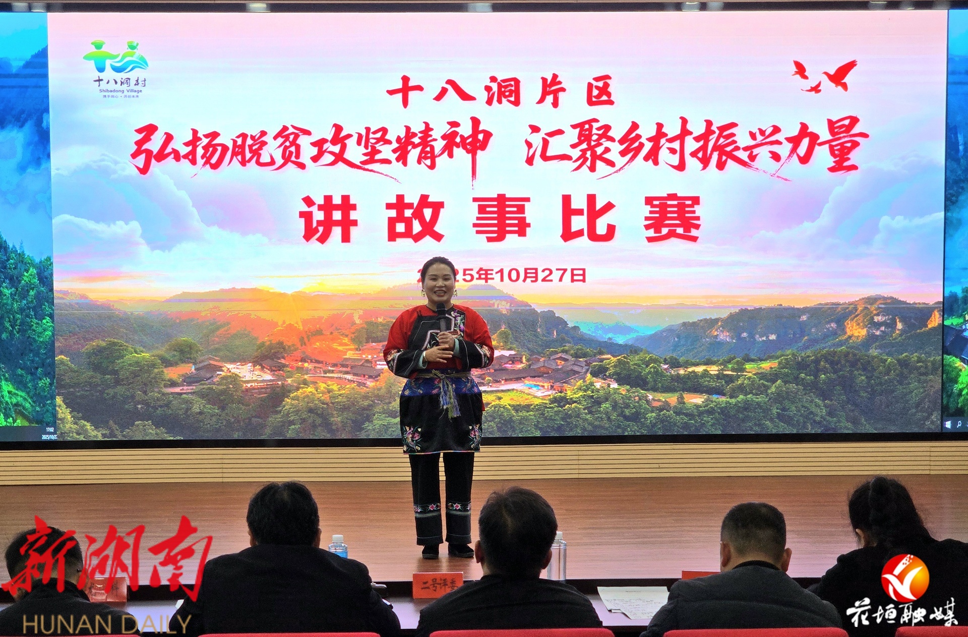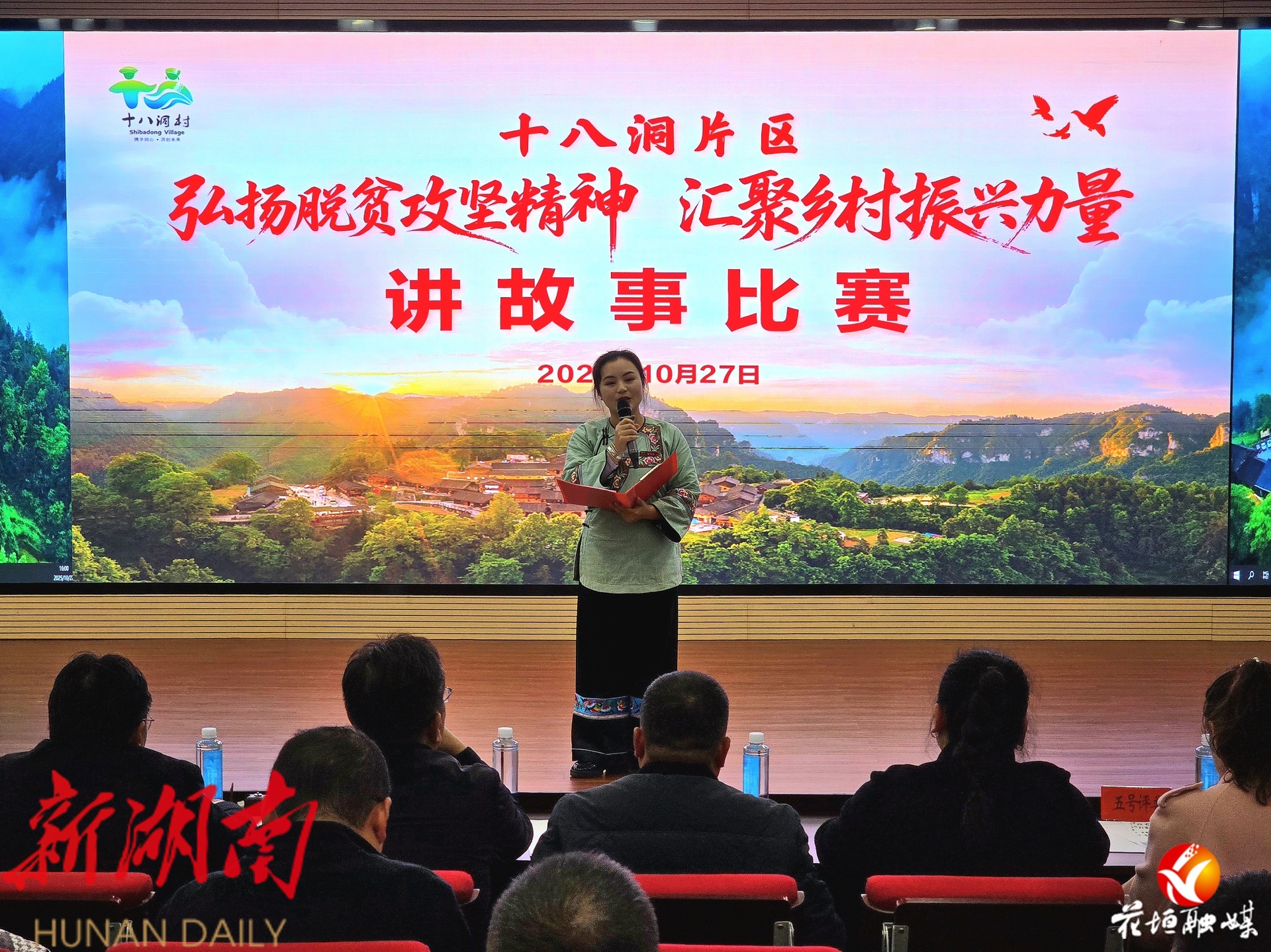 湖南日报·新湖南客户端10月28日讯(通讯员 李茜雯 杨泽江 麻秋萍 吴思齐) 10月27日,十八洞片区“弘扬脱贫攻坚精神,汇聚乡村振兴力量”讲故事比赛在十八洞党校举行。来自十八洞村及周边张刀村、双龙村、马鞍村、红英村、毛坪村、排碧村、排碧板栗村的13名参赛选手齐聚一堂,生动讲述家乡从“精准扶贫首倡地”迈向“乡村振兴示范区”的蜕变历程。