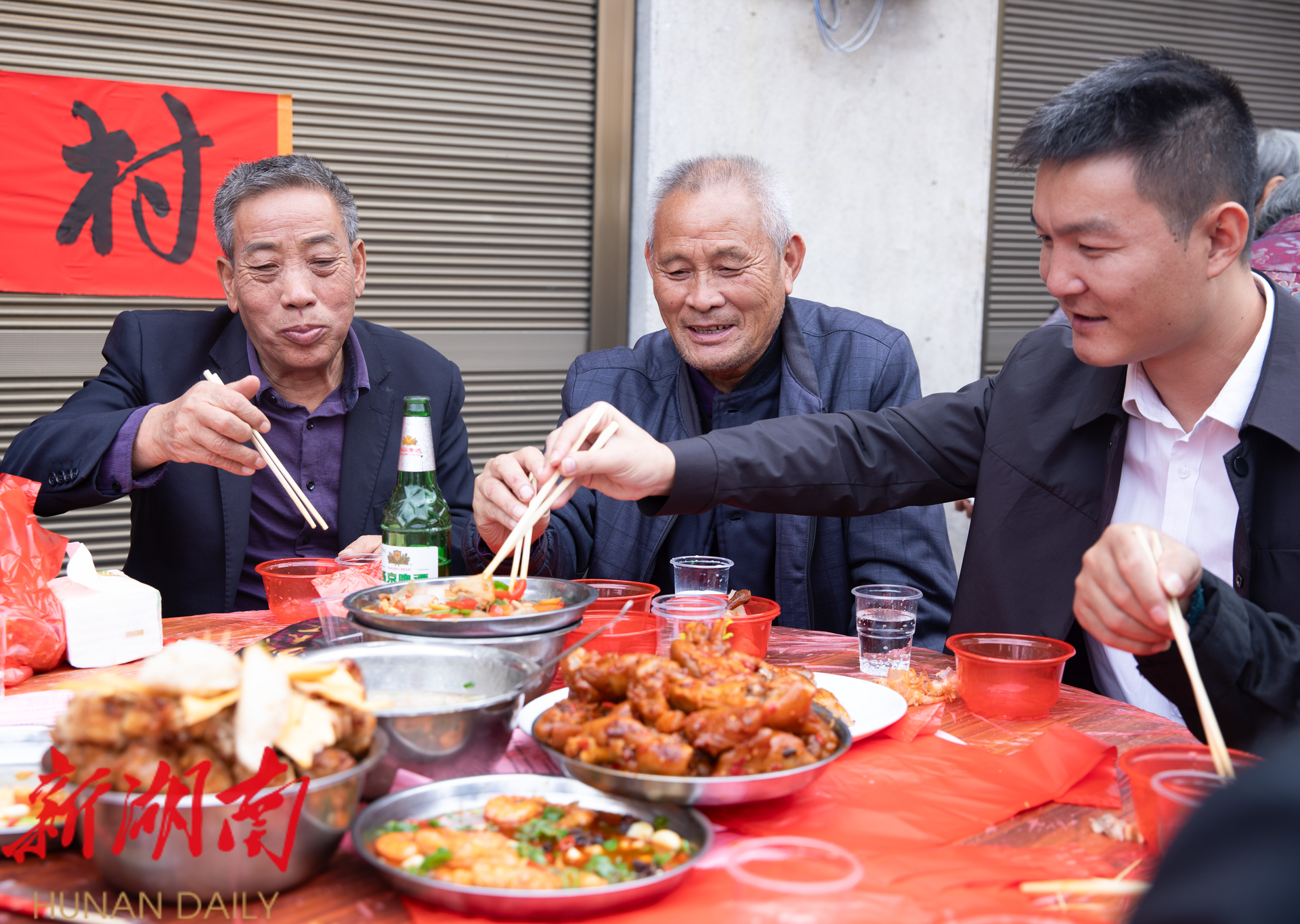 热闹的宴席间,看得见的是饭菜香,看不见的是乡村文明的新变迁。“以前村里办红白事讲究攀比,现在大家更愿意把钱花在敬老爱亲上。”村党支部书记肖万云介绍,在蒸湘区精神文明创建的带动下,村里修订了村规民约,入户宣传移风易俗,让崇德向善成为村民的自觉追求。“年轻人主动扛起孝善大旗,不仅让老人们安享晚年,更给乡村注入了青春活力,这就是我们乡村振兴最需要的精神力量。”