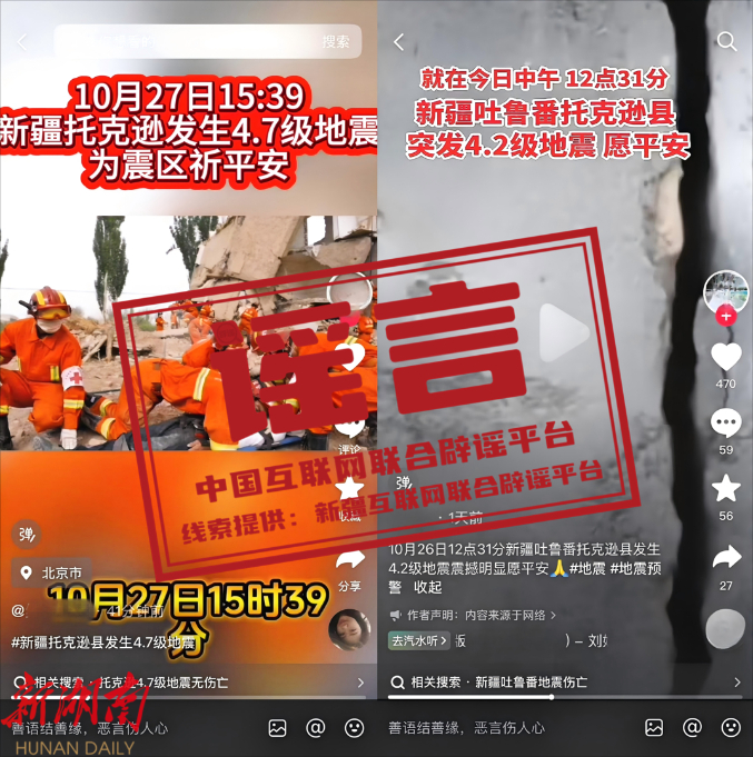 辟谣:新疆托克逊县发生4.7级地震,涉灾谣言请勿信