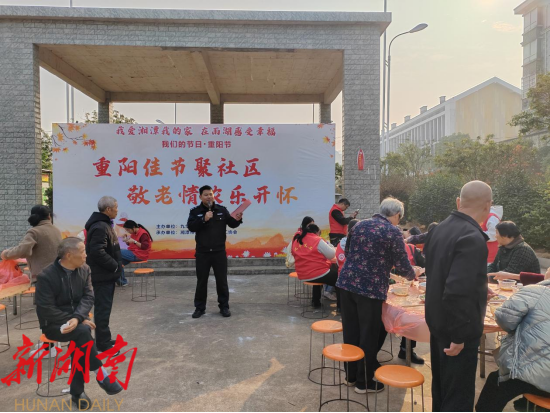 雨湖融媒 10 月 28 日讯 (通讯员 郭响玲)金秋送爽,丹桂飘香。在重阳佳节来临之际,为大力弘扬中华民族尊老、敬老、爱老、助老的传统美德,营造和谐温馨的社区氛围, 10月28日上午,九华街道将军渡社区在安置区文娱广场前坪举办了以“情暖重阳,邻里相亲”为主题的百家宴暨便民服务活动。活动为社区70岁以上的长者及广大居民带来了节日的关怀与欢乐,现场气氛热烈,温情洋溢。