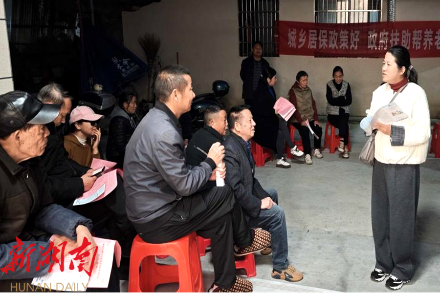 视外桃源客户端10月27日讯(通讯员:黄韬桦) “我今年52岁了,现在参保还来得及吗?”“哪个缴费档次最划算?”“听说政府有补贴,是真的吗?”在浔阳街道洞庭宫社区的屋场宣讲会上,居民们提出的一个个切身相关问题,工作人员始终面带微笑,用最通俗易懂的“家常话”进行耐心细致地解答。