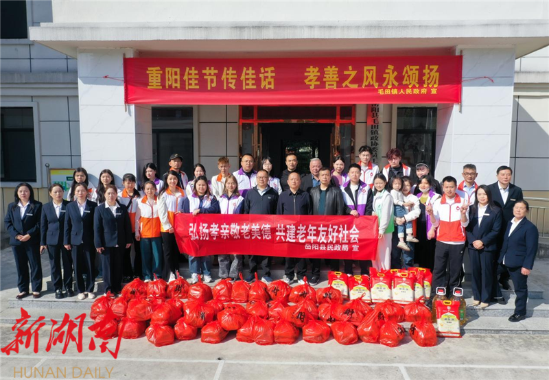 湖南日报·新湖南客户端10月29日讯(通讯员 陈伟) 岁岁重阳,今又重阳。10月28日,岳阳县毛田镇敬老院里暖意融融,县民政局联合县人寿保险公司、县微水爱心志愿者协会到毛田镇敬老院开展“弘扬孝亲敬老美德 共建老年友好社会”主题活动,以实际行动传递温暖,增强老年人的获得感、幸福感和安全感。
