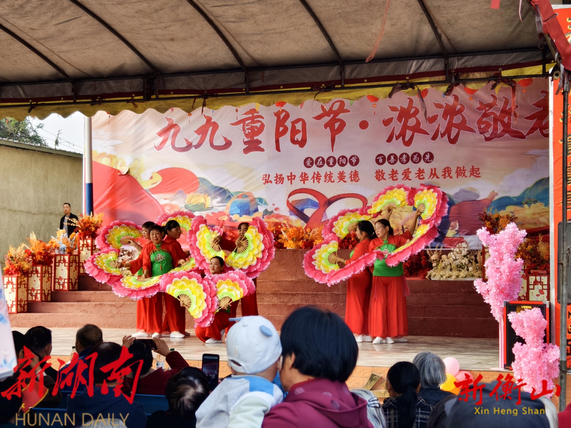新衡山客户端10月29日讯(记者:胡程远)金秋送爽,岁岁重阳。为弘扬中华民族敬老、爱老的传统美德,营造关爱老年人的浓厚氛围,10月29日,江东乡三桥村开展“九九重阳节 浓浓敬老情”文艺活动。50余名村民齐上阵,用精彩纷呈的表演,为全村500多位老人送上了最真诚的节日祝福。