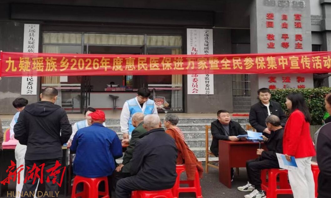 湖南日报·新湖南客户端10月29日讯(通讯员 赵瑶慧) 10月28日上午,宁远县九疑瑶族乡社会事务服务工作组联合县医保局、县税务局、联通公司组建宣传队,分别赴九疑山村、九疑洞村开展2026年度居民医保宣传,以“面对面、心连心”模式推进政策落地。