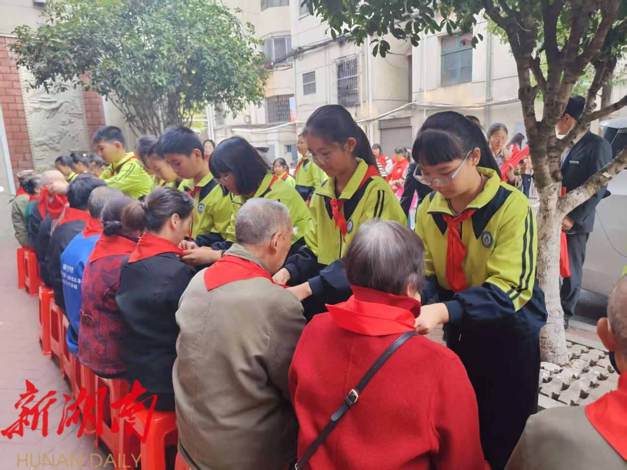 10月29日,蒸湘街道太平二社区的老人与蒸湘区实验小学的师生们欢聚一堂,通过系红领巾、送祝福、展才艺、共合唱等环节,用最纯真的童心传递尊老之情,以最真挚的陪伴诠释重阳之暖。
