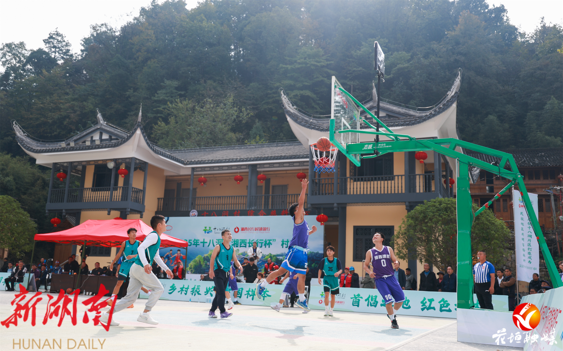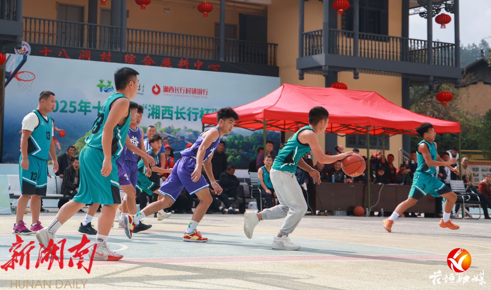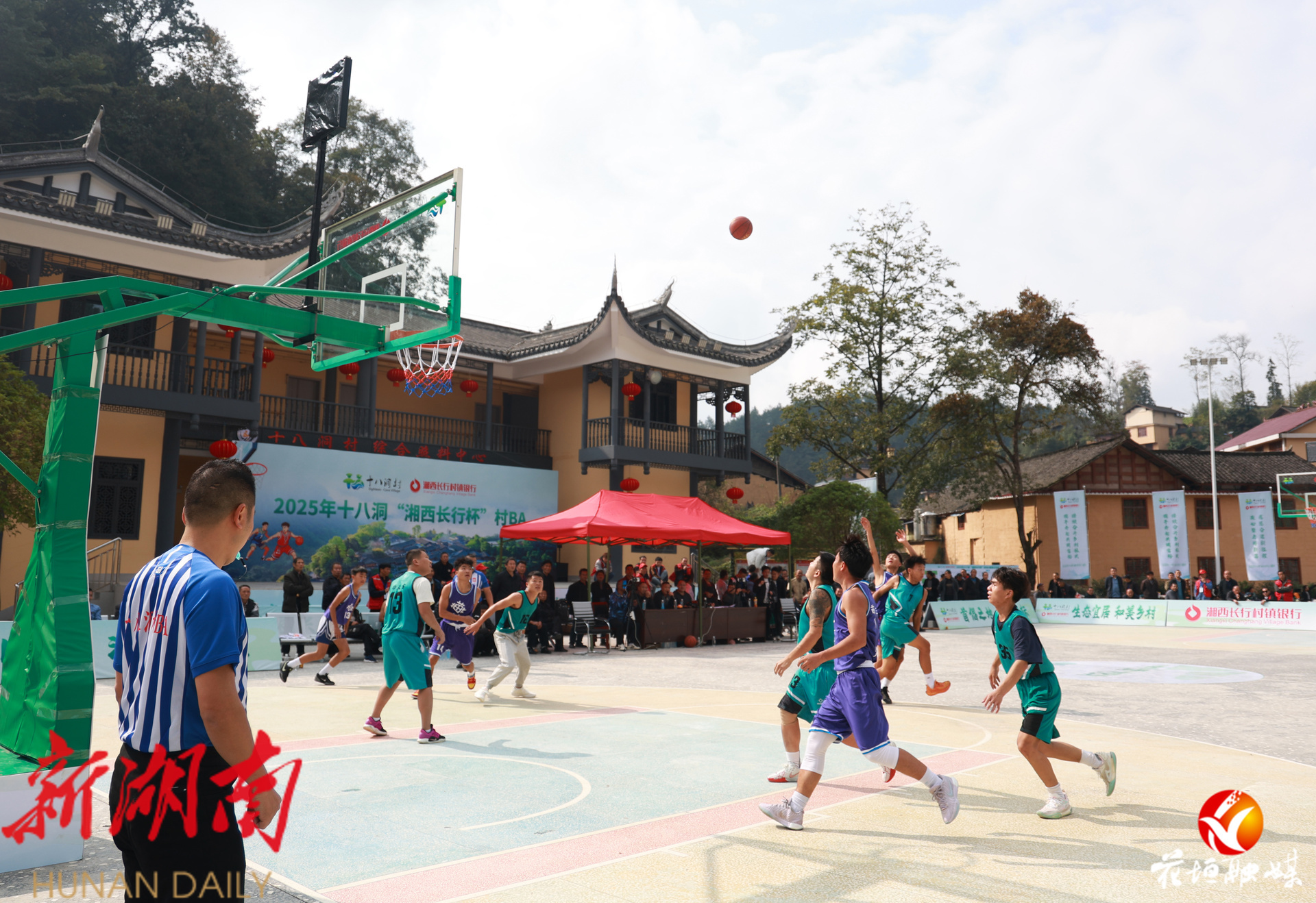 湖南日报·新湖南客户端10月29日讯(通讯员 张庆港 杨泽江 梁金梅 ) 10月29日上午,花垣县十八洞村飞虫寨旗帜飘扬、人头攒动,2025年十八洞“湘西长行杯”村BA正式拉开帷幕,这场为期6天的乡村体育盛宴,吸引了来自湖南省湘西州及贵州省松桃县的32支村级篮球队,大家以球会友、共展风采。