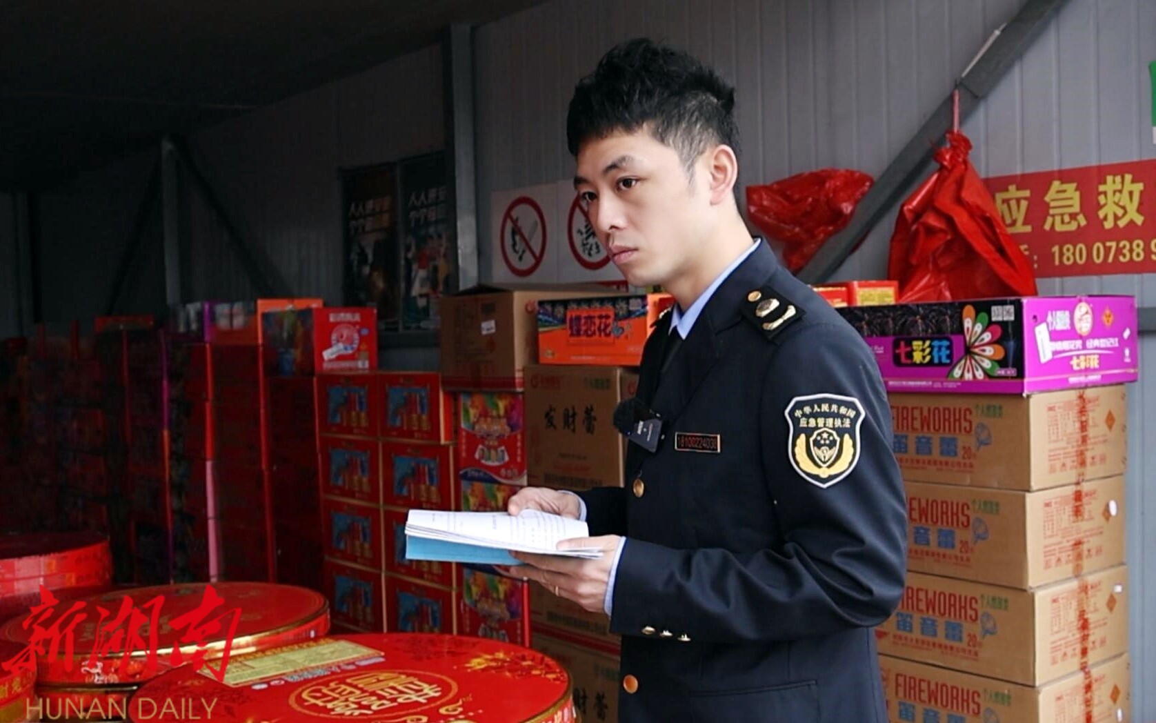 冷水江 市应急局烟花爆竹管理股办事员唐文强说:“这是我的工作,作为一个应急管理人的职责,我们的责任就是保护大家的生命财产安全。”