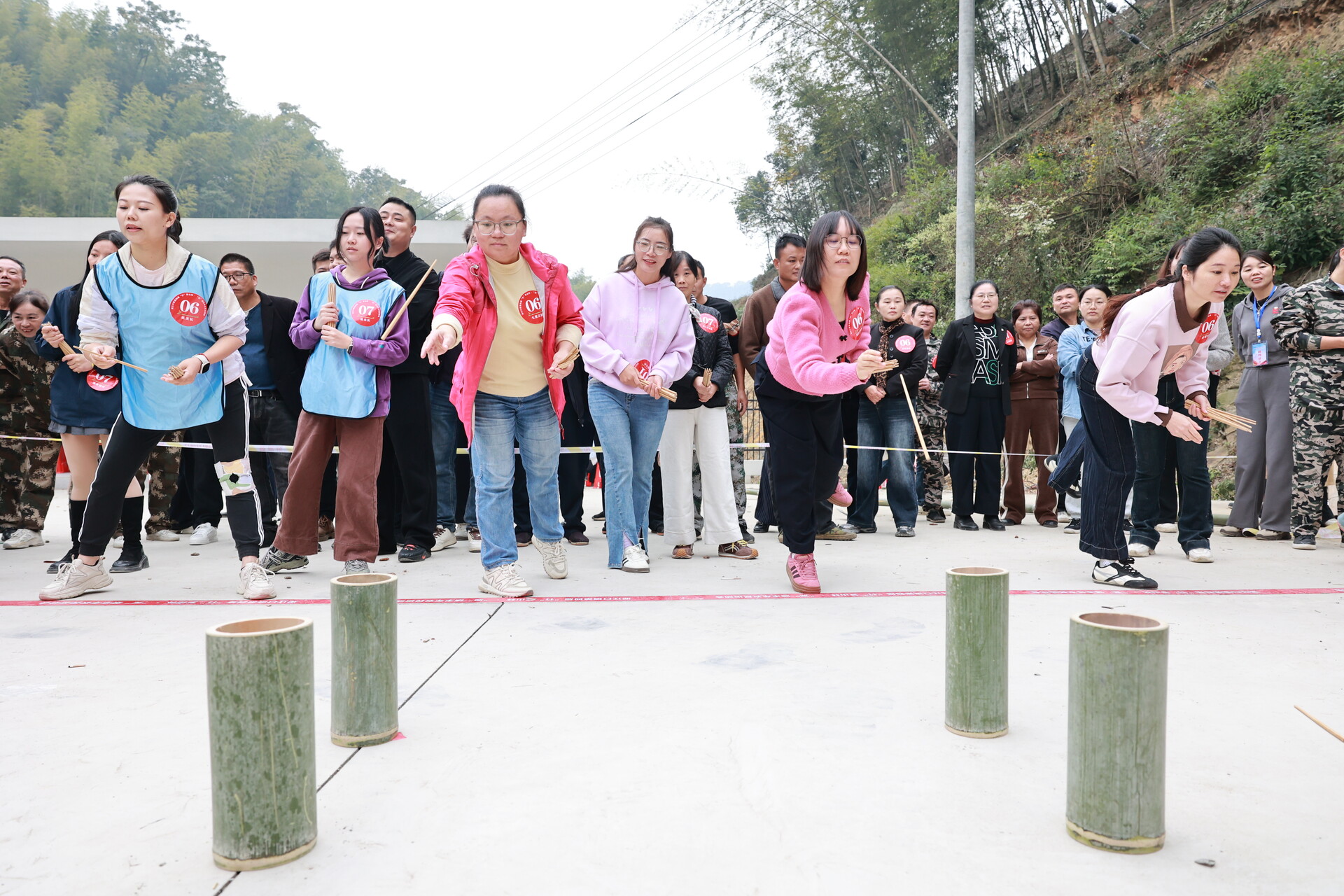此次运动会参赛人员来自泥江口镇的17个村(社区),共有近200人参加。平日里辛勤劳作的农民朋友们成为赛场上的“运动员”,大家团结协作,充分发挥自己的特长和潜力,为所在队伍争夺荣誉。运竹接力赛中,各参赛队伍派出4名队员,循环搬运一根6米长的竹子,考验着队员们的速度、体能与协作能力;砍竹竞赛中,各队伍纷纷派出木工能手参加比拼,他们熟练地利用着框锯,在最短的时间内将长竹锯成同等长度的竹筒并完成规定数量;竹筷投掷赛讲究协调性,妇女同胞们纷纷出战,她们全神贯注,瞄准、投掷,展现出巾帼不让须眉的气势;挖冬笋比赛可是一项技术活,不过在泥江口镇可难不倒这里的参赛队员们,他们通过观察竹叶茂盛程度、竹节密度等特征判断笋的位置,将一个个新鲜的冬笋从地里挖出。这些项目不仅考验了参赛者的体力与技巧,更体现了农民朋友在日常劳作中积累的智慧与协作精神,充分展现了泥江口镇广大农民群众乐观向上、团结拼搏、奋发有为的新时代精神风貌。