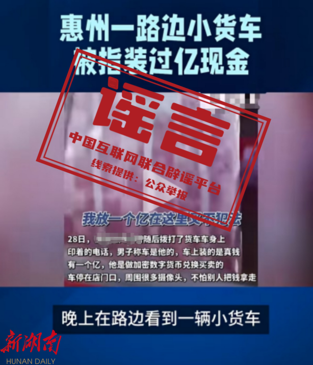 辟谣:广东惠州街头一货车装有过亿现金?实为道具