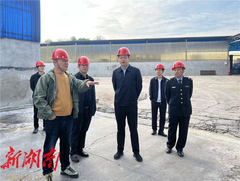 贺立一行先后前往新墙镇新蓝天科技有限公司、柏祥镇竣博建筑材料工程有限公司,实地检查生产车间、仓储区域,与企业负责人交流,详细了解生产流程、人员防护及安全制度落实情况,督导工贸企业安全生产。