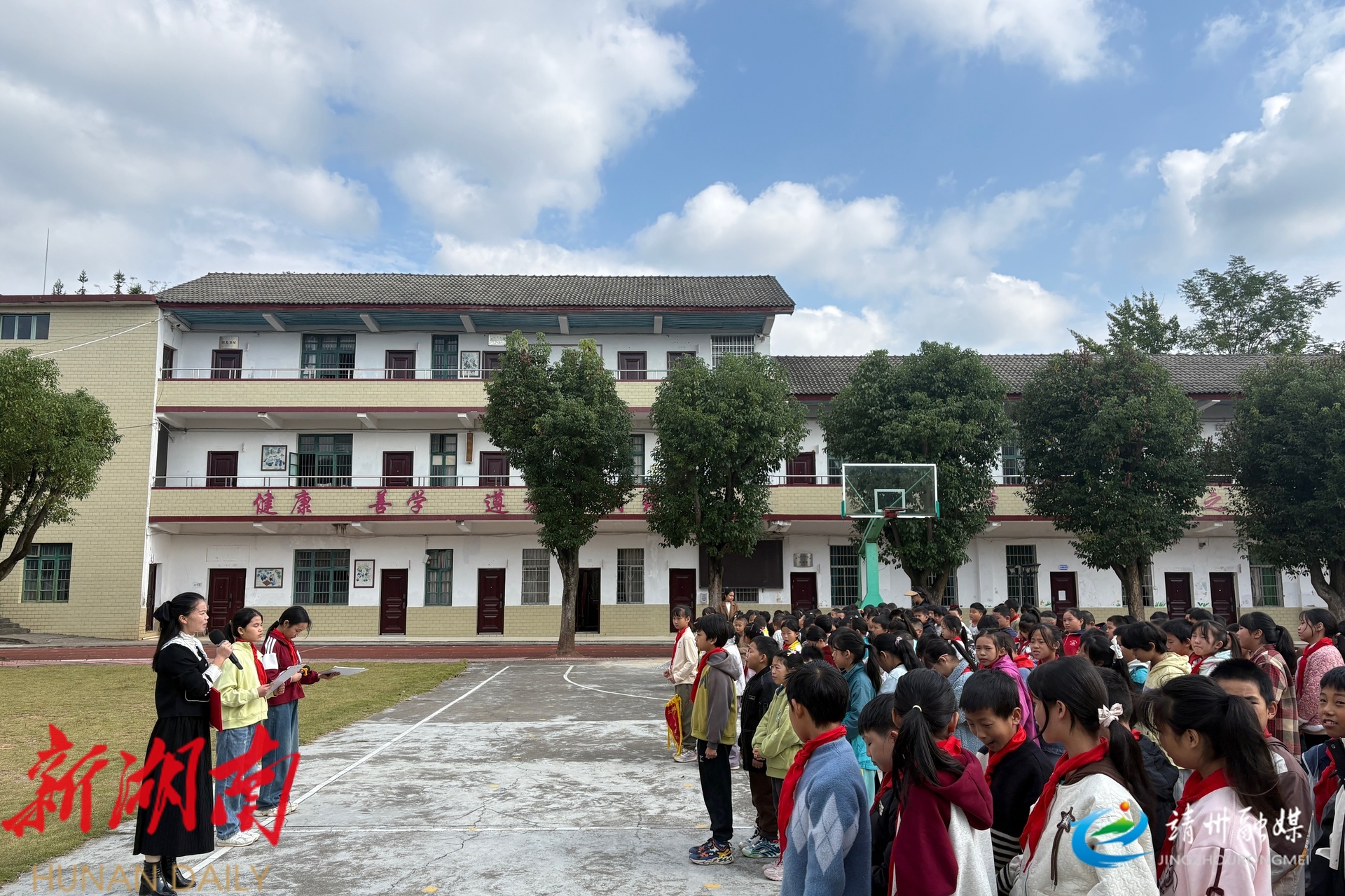 靖州融媒10月29日讯 (通讯员 马文芝 吴声湘)10月27日,靖州苗族侗族自治县芙蓉学校、横江桥小学同步开展特色思政课,引导学生坚定理想信念、厚植家国情怀,助力学生扣好人生 “第一粒扣子”。