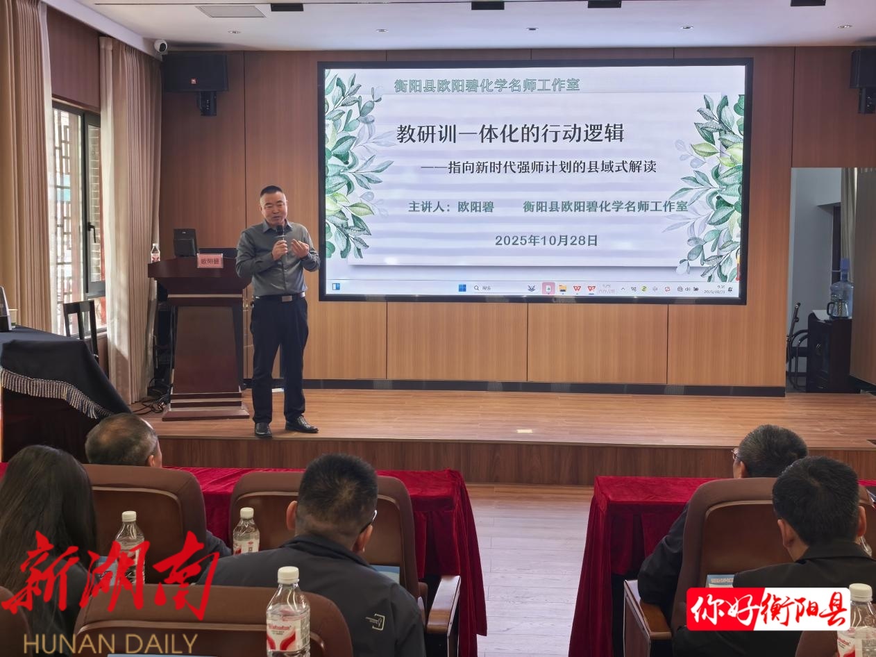 衡阳县融媒10月30日讯 (通讯员:盛昊鹰 张智慧) 10月28日,由衡阳县教育局主办,衡阳县教师进修学校与欧阳碧化学名师工作室共同承办的“2025年衡阳县高中暨‘欧阳碧化学名师工作室’骨干教师创新能力培训班”在县教师进修学校正式启动,为期四天的“沉浸式+实践型”研修活动同步展开。