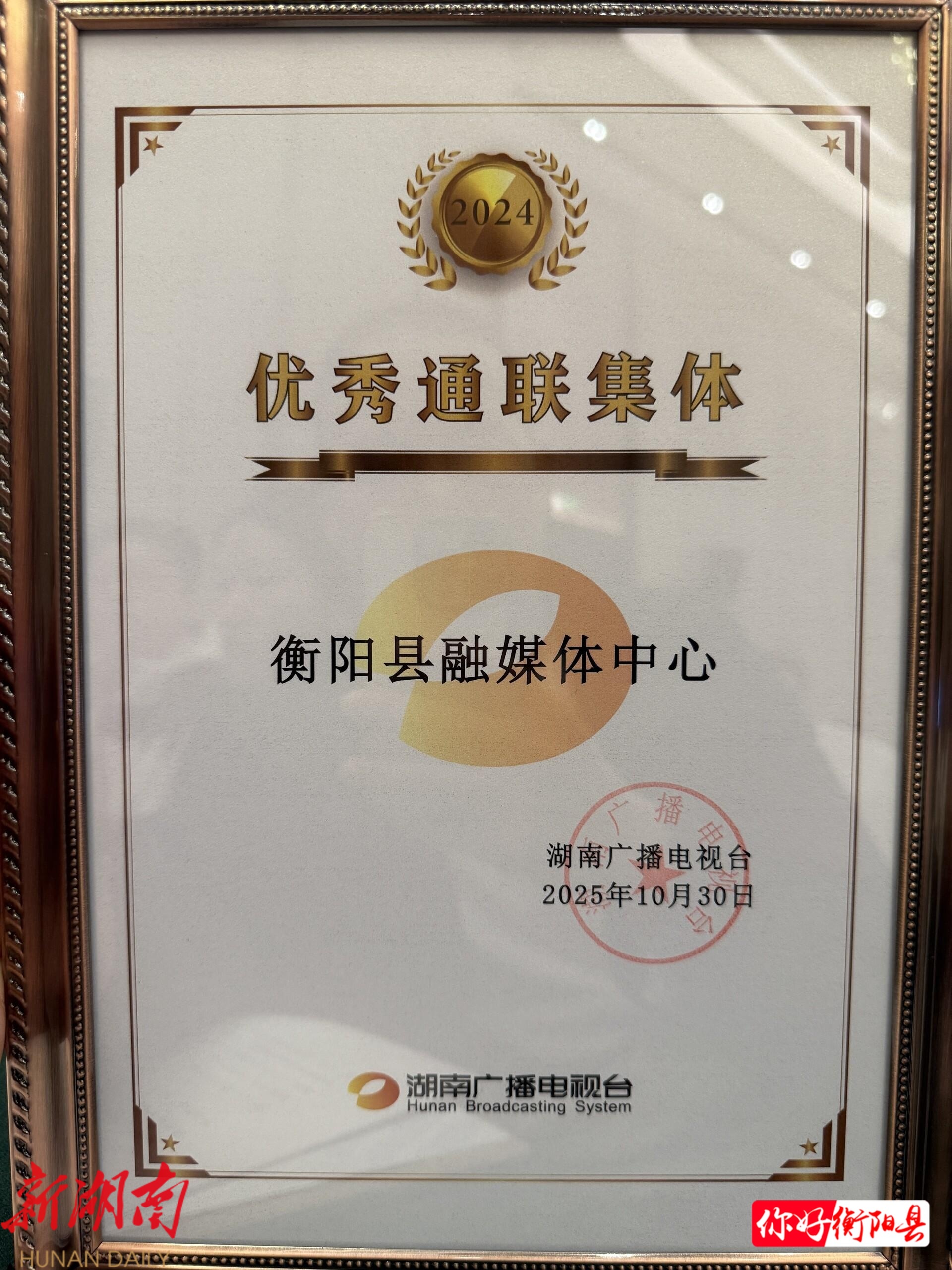 衡阳县融媒体中心荣获湖南广电“优秀通联集体”