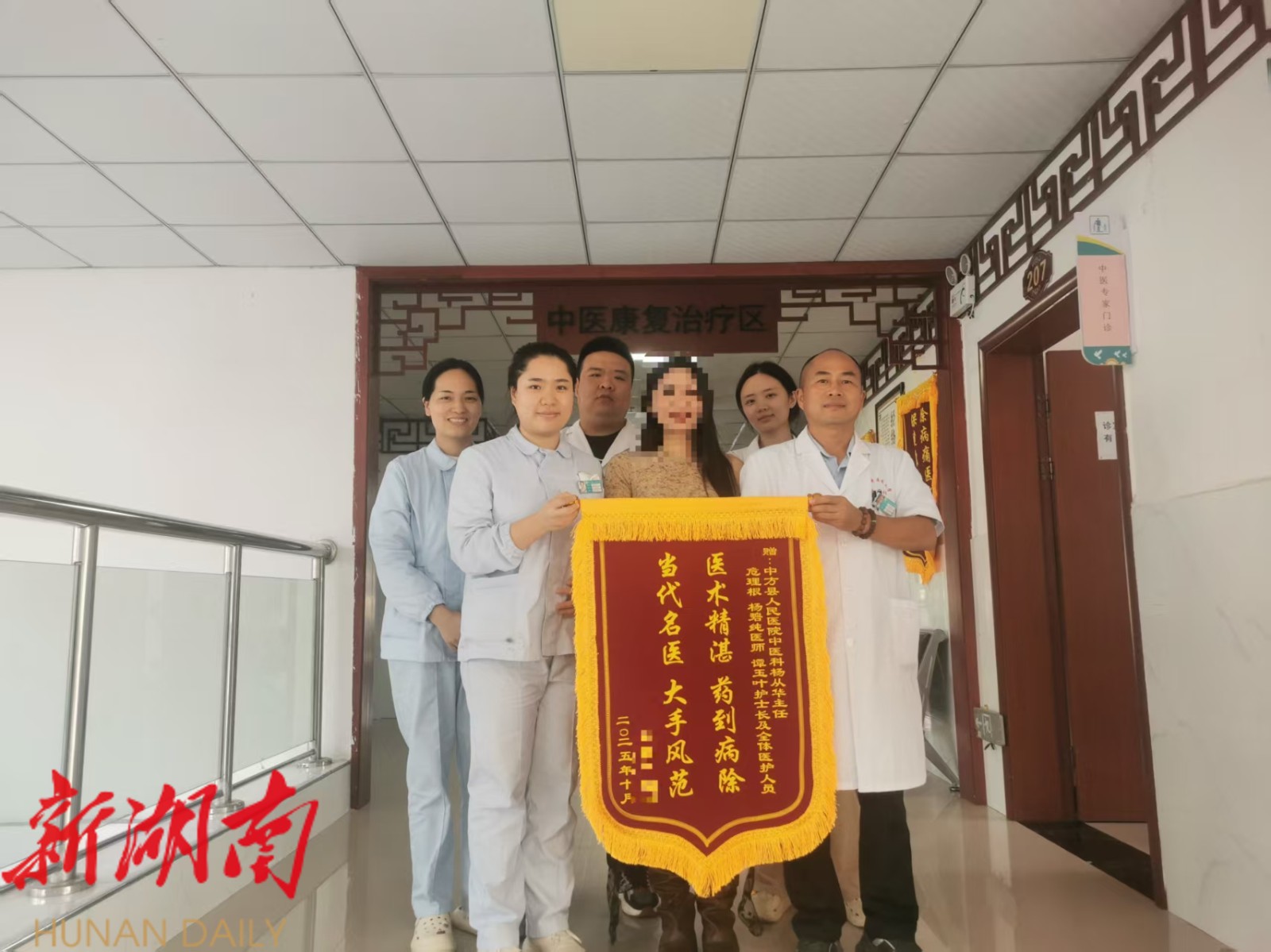中方融媒10月30日讯 (通讯员:杨从华)近日,中方县人民医院中医科传来暖心消息,经过近三个月的系统治疗,饱受焦虑、失眠困扰长达数年的溆浦县患者舒女士,成功停用抗焦虑药物,睡眠质量显著改善,生活终于回到正轨了!”她激动地为中医科团队送上锦旗致谢。