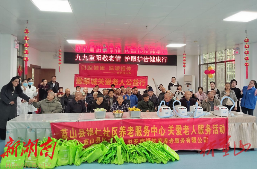 新蓝山客户端10月30日讯 (通讯员 罗红珍 成磊)近日,蓝山县辅仁社区老年人日间照料服务中心携手爱心企业,共同举办“九九重阳敬老情 护眼护齿健康行”公益活动,为社区及敬老院的老年人送上节日的问候与健康关怀。