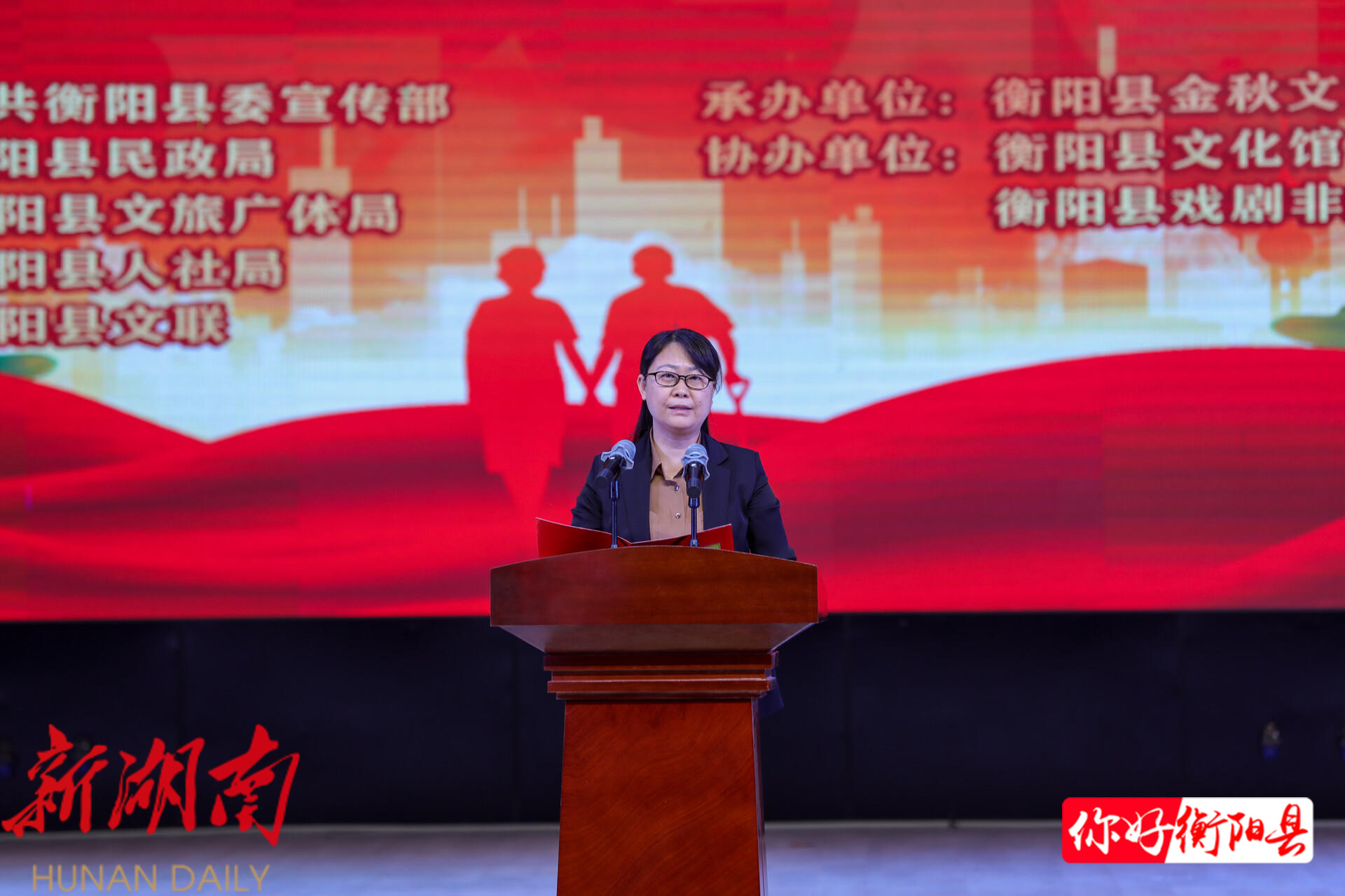 衡阳县融媒10月30日讯(记者:刘沛林 张兴宇 通讯员:刘欣荣) 岁岁重阳,今又重阳。10月29日晚,我县“我们的节日·重阳”文艺晚会温情启幕,广大老年朋友欢聚一堂,在精彩的歌舞表演中共叙情谊、共度佳节。县委书记孙浩,县委副书记、县长杨峰,县委副书记、宣传部部长刘洋出席晚会并观看演出。