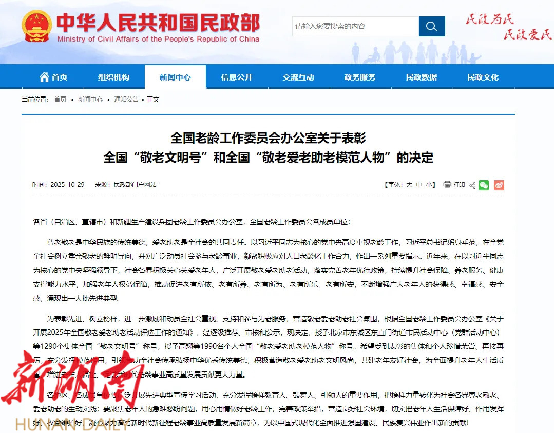 来 源:中华人民共和国民政部官网