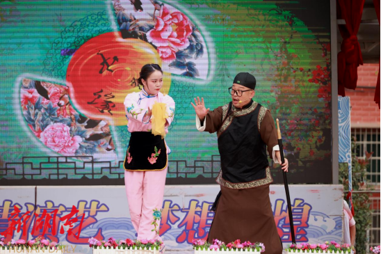 活动在热闹欢腾的开场表演《金狮送福》中拉开帷幕。随后,歌曲《欢聚一堂》唱出团聚的温暖和喜悦,花鼓戏经典选段《讨学钱》诙谐幽默,引得满堂喝彩。还有柔术、杂技等节目,舞台上演员们以高难度动作和巧妙编排,展现了力量与柔美的完美融合,将现场气氛推向了高潮。
