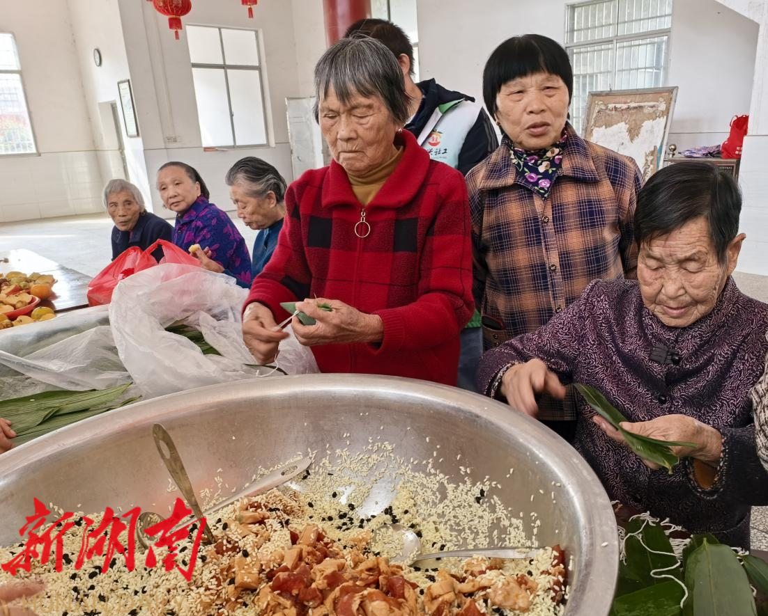 活动围绕“湘情暖老”主题,结合农村老人生活需求,设置了包粽子、茶话会和慰问走访等环节。现场粽香四溢,老人们与社工、志愿者共同包制粽子,交流互动,气氛温馨。粽子煮熟后,除分发给现场老人外,还专门送至行动不便的特困老人家中。