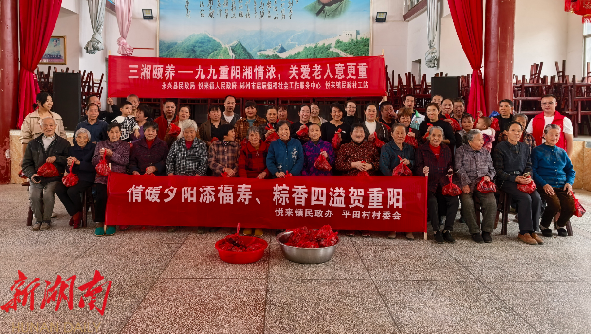湖南日报·新湖南客户端10月31日讯(通讯员 刘烈阳 潘婷)10月29日,永兴县悦来镇民政社工站在平田村举办“三湘颐养——九九重阳湘情浓,关爱老人意更重”重阳节主题活动,弘扬尊老敬老传统美德。