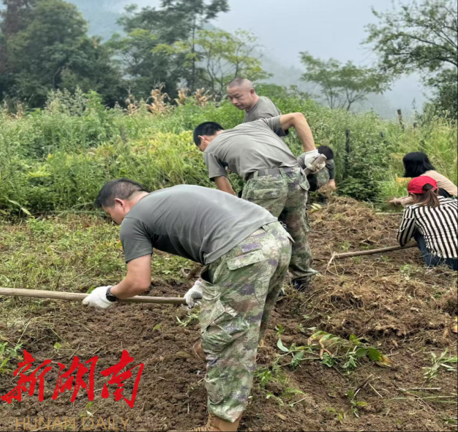 干部变“农民”,田间地头践初心,连日来在增家源村的玉竹种植地里,一群身穿迷彩“特殊农民”格外醒目。他们弯腰挥锄、分拣装筐,动作虽不熟练却干劲十足。原来,这是欧阳海镇武装部长带领的10余名党员干部、基干民兵组成的帮扶小分队。得知部分脱贫困户和群众因家中缺劳力面临采收难题后,欧阳海镇党委政府迅速动员干部下沉一线,帮扶队帮助群众采收玉竹3余亩,确保药材及时上市卖上好价钱。