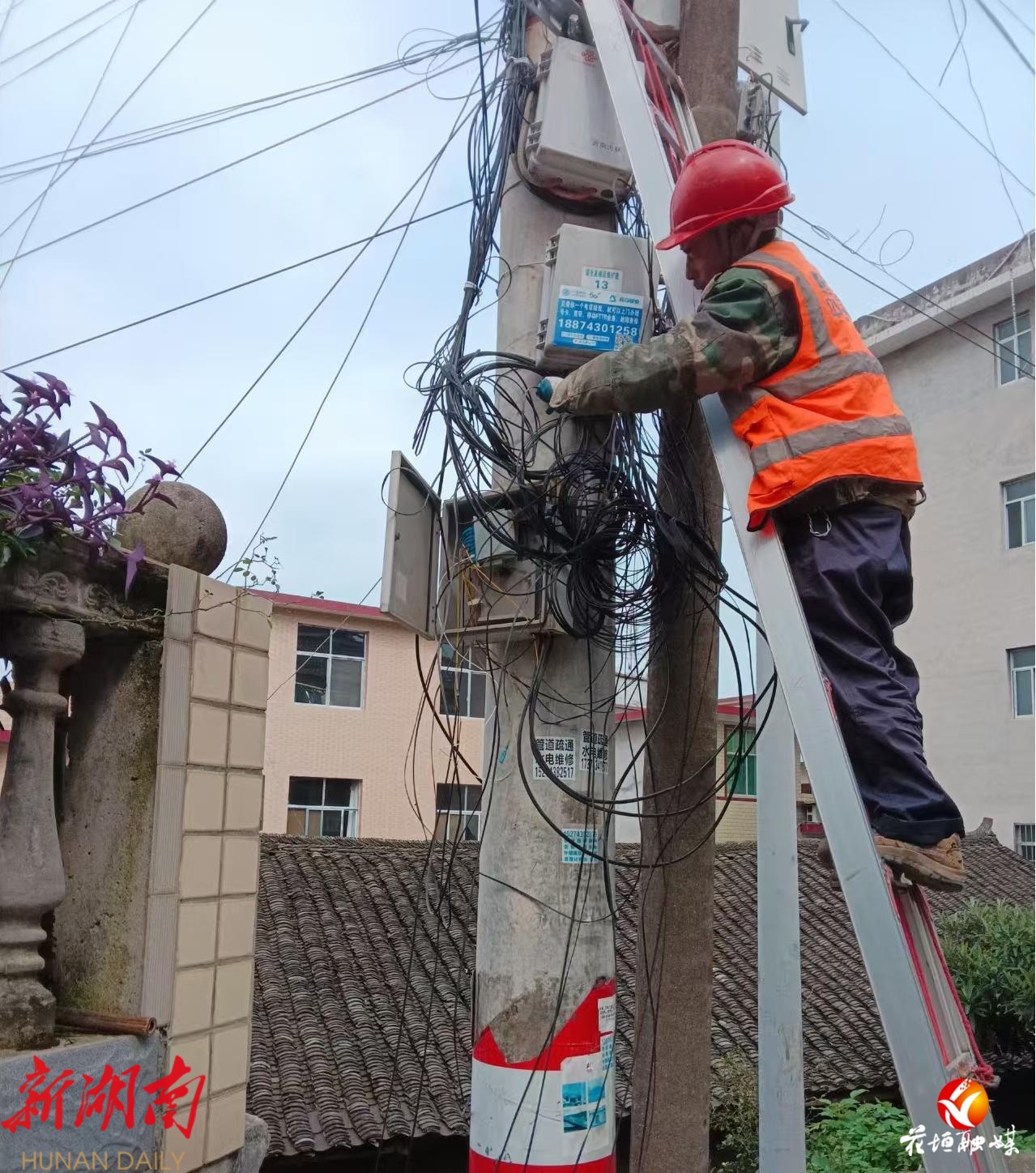 通信线缆与电力线路“搭挂共生”曾是历史遗留难题,强电与弱电混附不仅易引发触电、火灾事故,杂乱线缆更影响市容村貌。为此,花垣县建立“政府统筹、部门联动、企业实施”工作机制,由县发改局、县科技和工业信息化局牵头,联合电力部门及四大运营商组建专项工作组,明确责任分工与时间节点,形成整治合力。