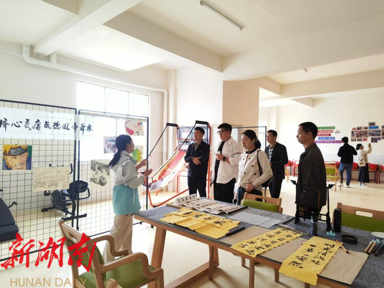 考察团一行参观了县级综合服务中心的阵地建设与功能设置,详细了解“1+7+N”服务体系的整体架构与运行机制。在中心讲解员的引导下,道县考察团参观了集心理疗愈、生活技能训练、手工赋能、农疗展示、志愿服务于一体的多功能康复空间,并通过项目展板、成果陈列、影像资料及现场演示,全面了解了“农疗+”特色服务品牌的实施路径与康复成效。