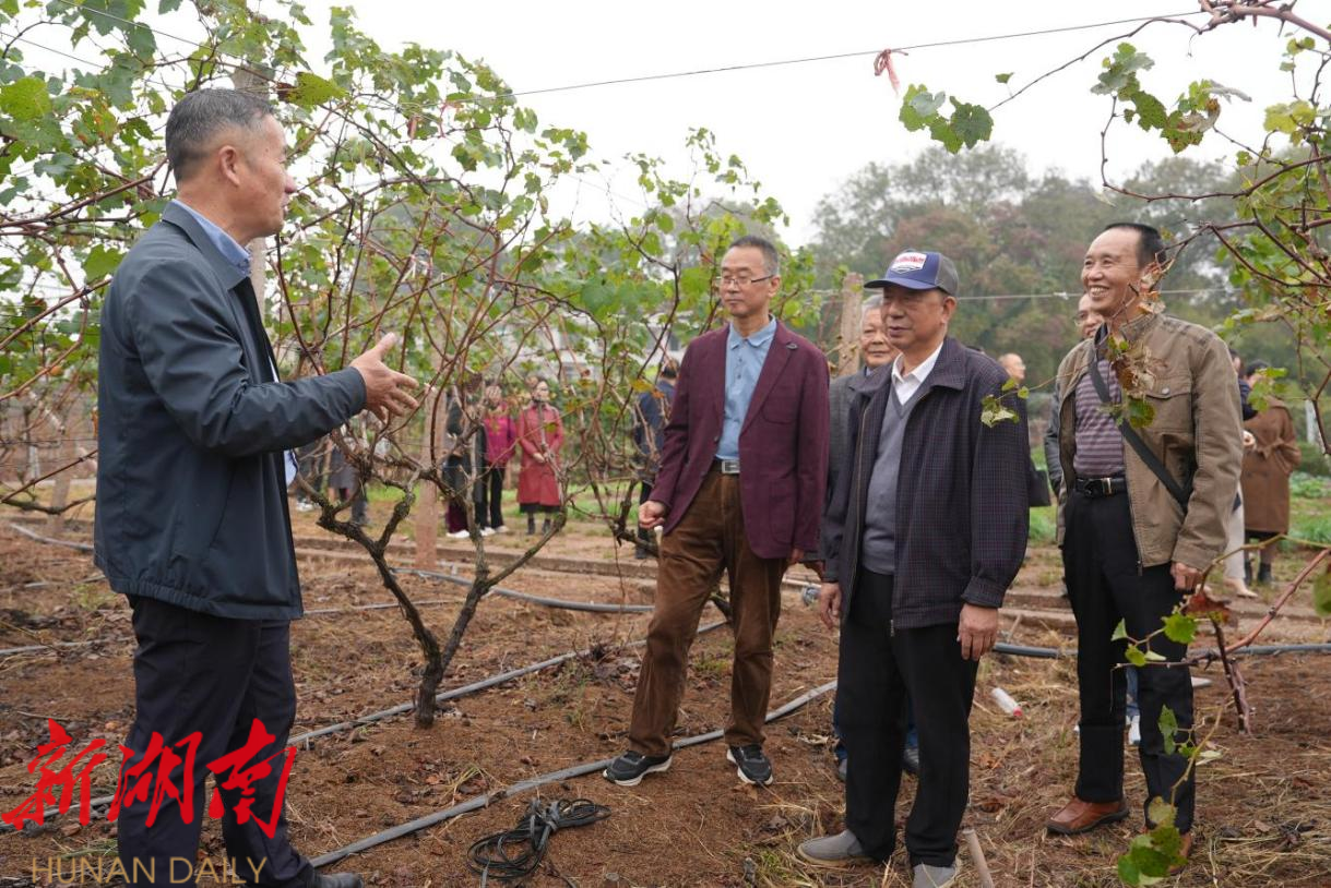 当天上午,参会人员首先来到省市老科协科技示范基地——华农葡萄园实地参观。大家一边参观葡萄种植情况,一边聆听老科技工作者陈华分享种植经验,切身感受银发人才在服务农业发展、助力乡村振兴中的智慧与汗水。