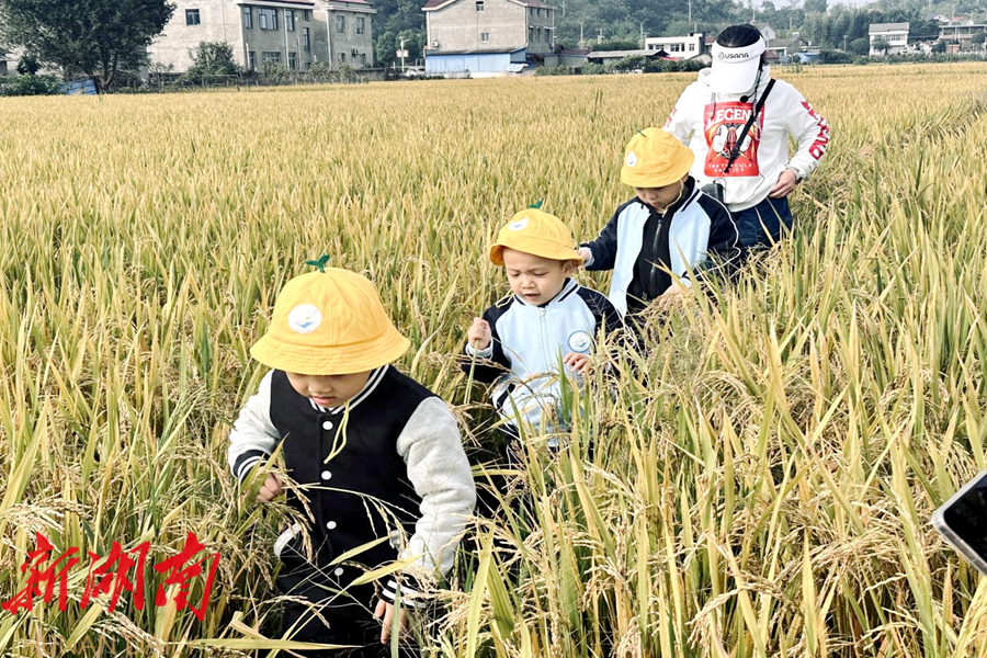 视外桃源客户端10月29日讯(通讯员:曾一峰)金秋十月,稻浪翻涌,正是收获与探索的好时节。近日 ,桃源县师苑幼儿园与桃源县新华书店联合举办的“秋日遇‘稻’你”主题秋游活动在铁船堰稻田温暖开展。孩子们走进田野,亲触自然,在稻香与欢笑中度过了一段充满教育意义与童趣的秋日时光。