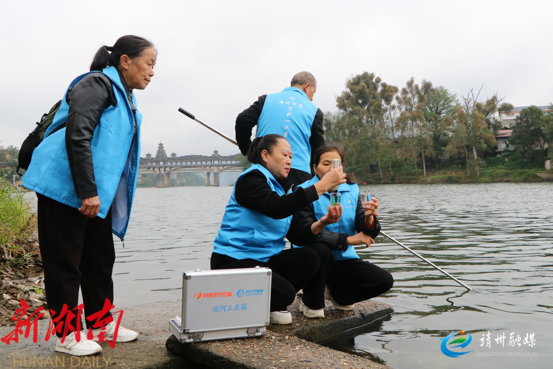 志愿者在用巡河工具箱检测水质(夏源懋 摄)