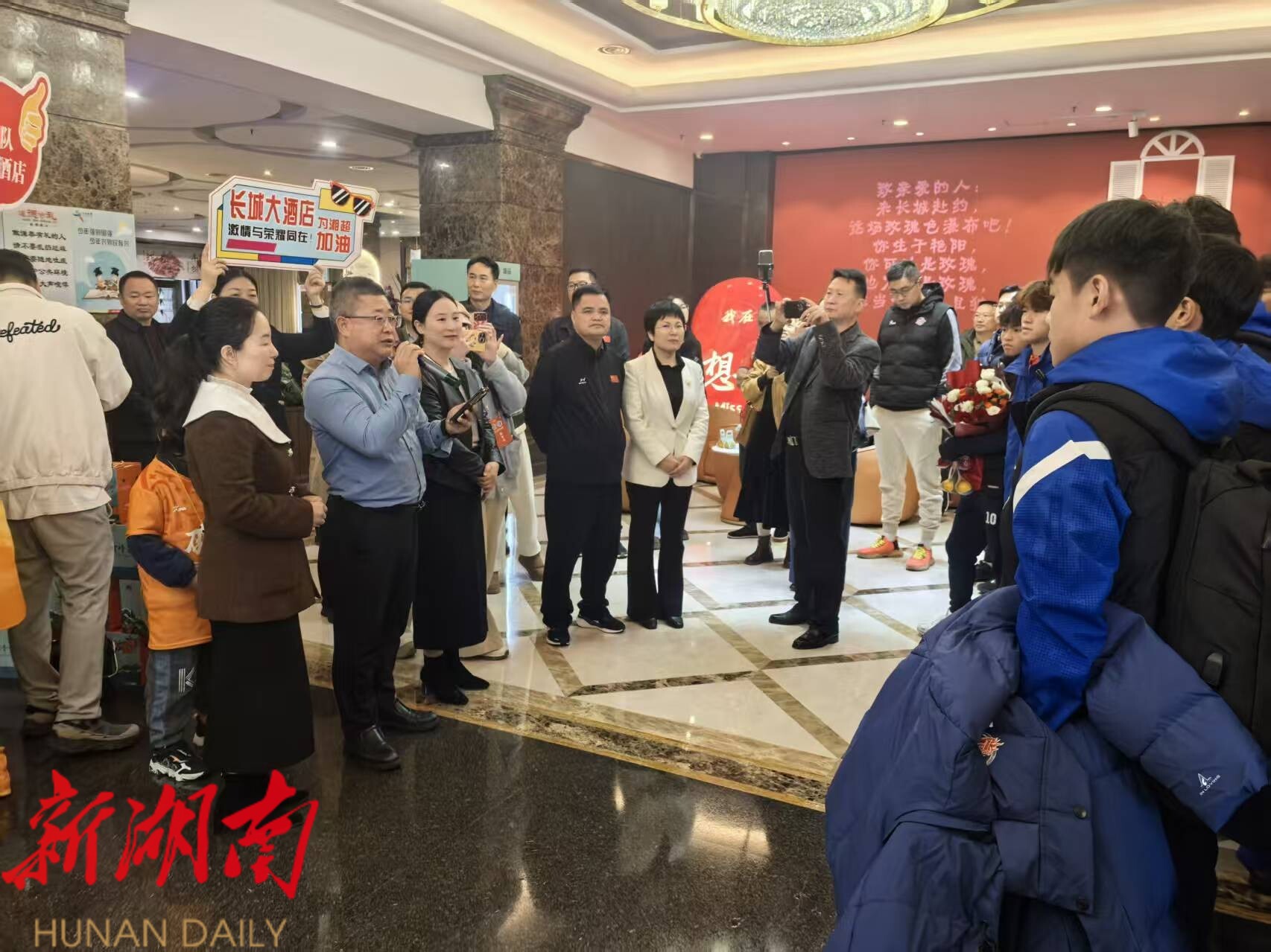 洞口融媒11月1日讯(记者:林巍浩) 11月1日,承载着球迷期待的娄底队车队抵达邵阳长城大酒店,一场充满洞口特色的欢迎仪式已悄然就绪。县政协主席向兵,副县长毛超林出席活动。