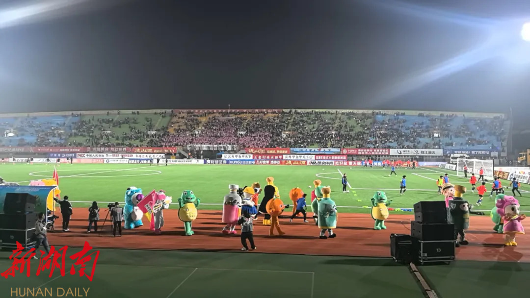 比赛正式开始前,来自汉寿的开场表演歌伴舞《我相信》以熟悉的旋律点燃全场,青春舞步随之跃动,既舒缓了观众的观赛压力,也为即将上场的球员注入了满满能量。 来自汉寿的非遗表演唱《龙舟号子》则亮相中场表演环节,演员们以昂扬的姿态、铿锵的韵律,诉说着汉寿坐拥水乡灵韵、龙舟竞渡传统绵延千年的文化底蕴。