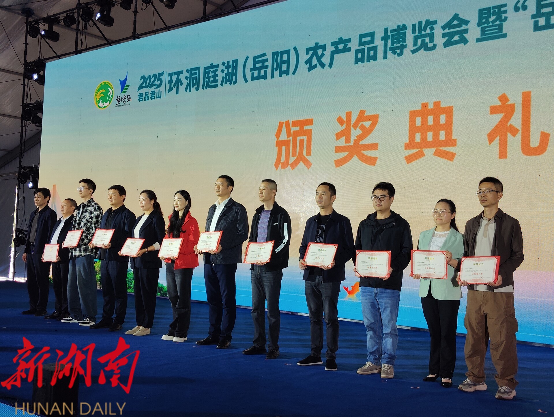 湖南日报·新湖南客户端11月2日讯(通讯员 周洪勇 徐晚晴 俞洞波)11月2日,笔者从2025环洞庭湖(岳阳)农产品博览会成果发布大会上获悉,樟树港生态农业的“洞庭鲜生樟树港晒青椒”、华康食品的“杨记华康茶油腐乳”、杨林寨的平菇、金甸甸食品的“腊香腊八豆”与“麻辣豆豉”,以及弘康生态农业的“福多多猪肉”荣获产品金奖。同时,湖南省长康实业有限责任公司、湖南横岭湖农业科技开发有限公司、湖南全都旺食品有限公司获评“优秀展商奖”。湘阴县农业农村局、湘阴县贸促会因组织工作出色,荣获“优秀组织奖”。
