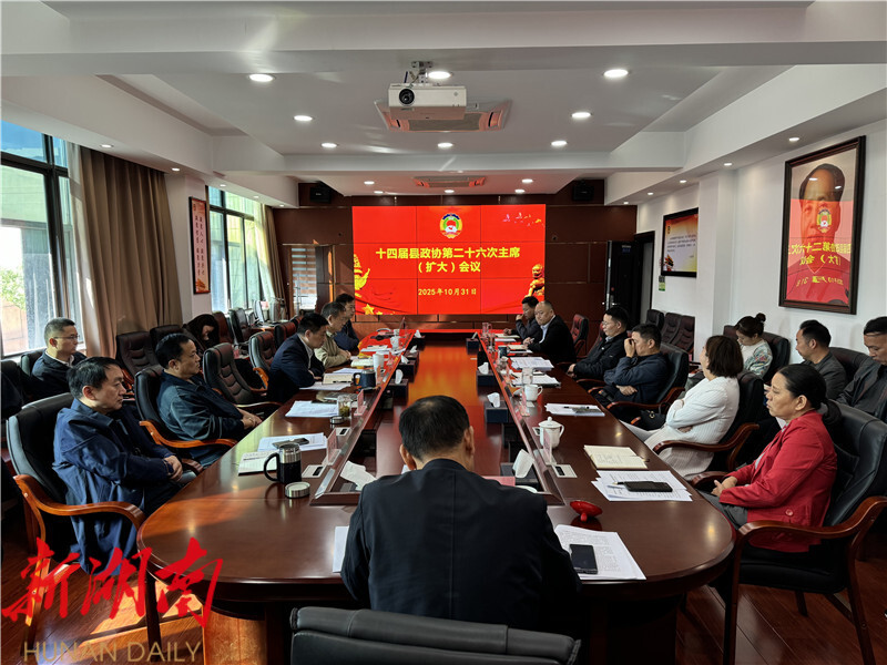 湖南日报·新湖南客户端10月31日讯(通讯员 周昱君) 10月31日,县政协党组书记、主席周里主持召开十四届县政协第二十六次主席(扩大)会。县政协副主席刘卫兵、彭荣欣、张忠新、敖珊出席,县政协机关干部职工参加。