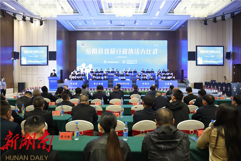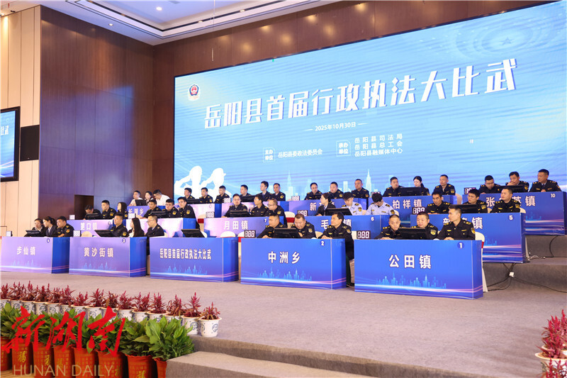 湖南日报·新湖南客户端10月31日讯(通讯员 张帆 周昱君 龚若枫) 为深入推进法治政府建设,全面提升行政执法队伍业务素质和执法水平,10月30日,岳阳县首届“行政执法大比武”活动顺利举行。来自全县31支队伍的93名执法干部齐聚一堂,以赛竞技、以比促干,上演了一场精彩纷呈的法治“练兵盛宴”。县委常委、政法委书记张哲君出席活动并发表致辞。