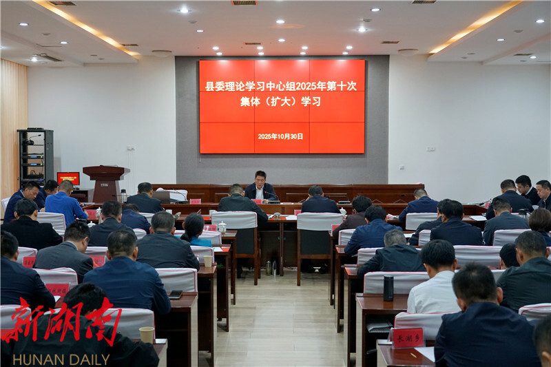 湖南日报·新湖南客户端10月31日讯(通讯员 罗爽 周星亮) 10月30日,县委理论学习中心组举行2025年第十次集体(扩大)学习,深入学习《习近平谈治国理政》第五卷,引导广大党员、干部持之以恒读原著、学原文、悟原理,持续增强学思想、悟思想、用思想的自觉性和坚定性,深刻领悟“两个确立”的决定性意义、坚决做到“两个维护”,切实把学习成果转化为干事创业、推动岳阳县高质量发展的实际成效。县委书记肖湘晖主持并讲话,县委副书记、县长吴光文及其他在家的县“四大家”领导班子,法检“两长”等参加。