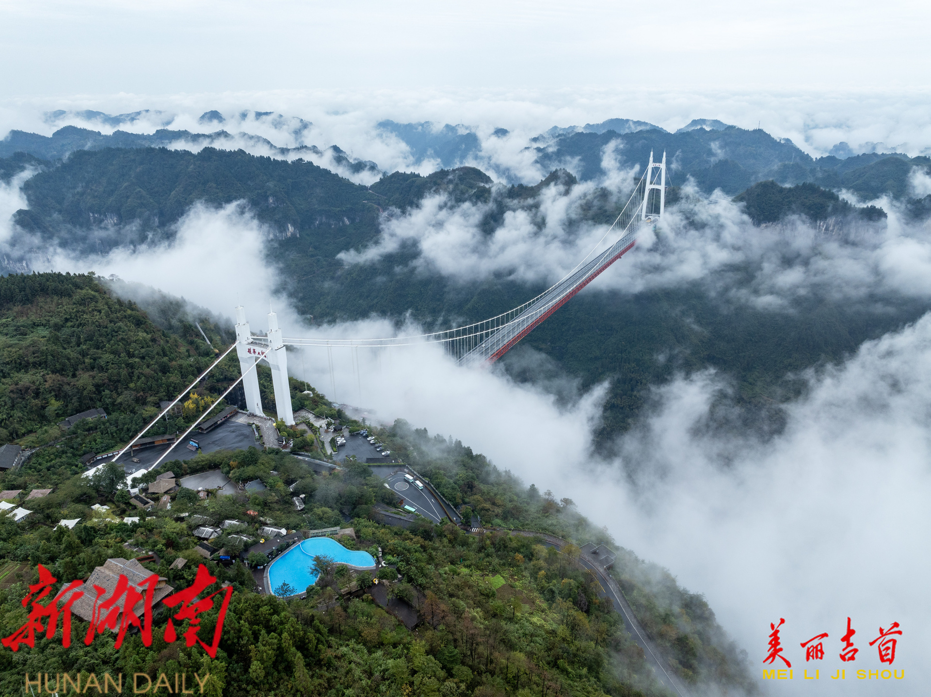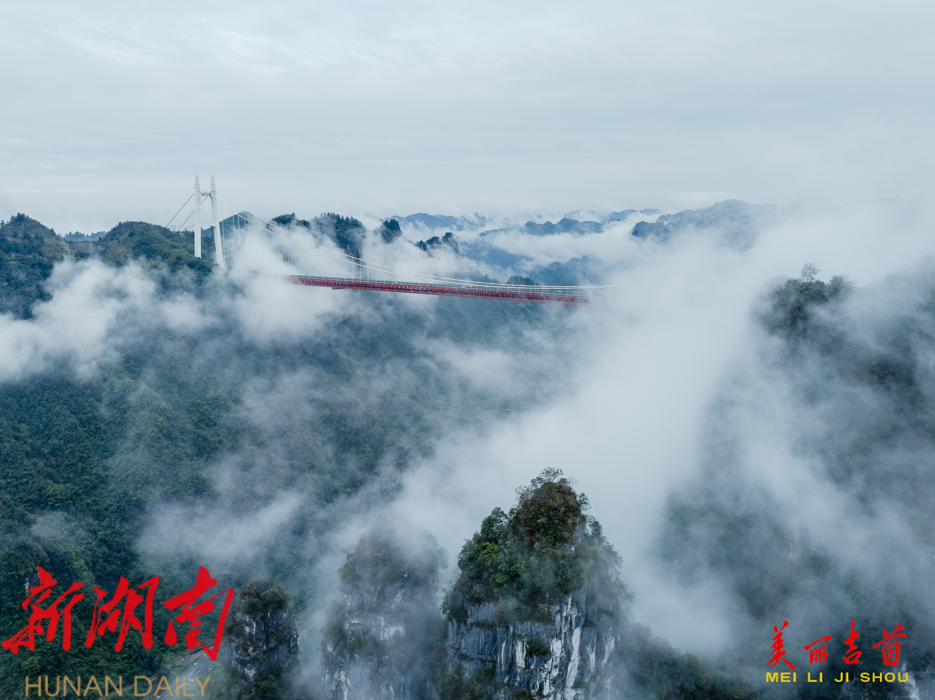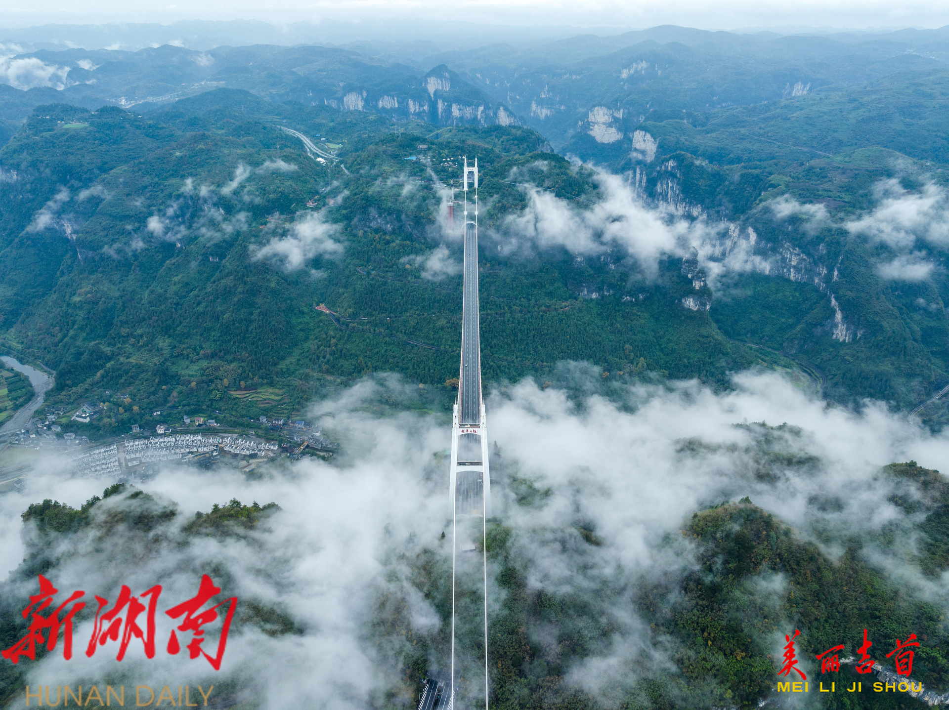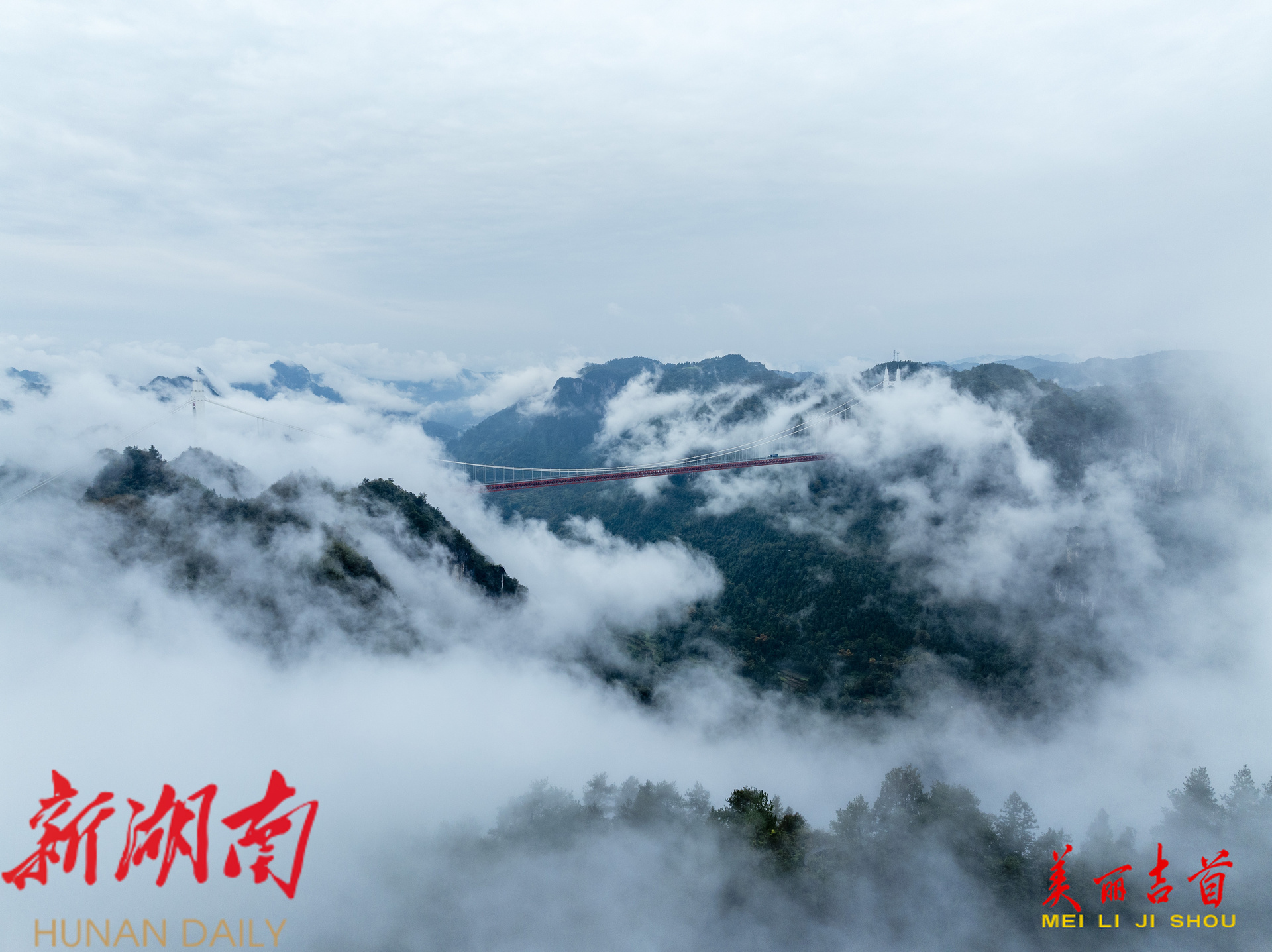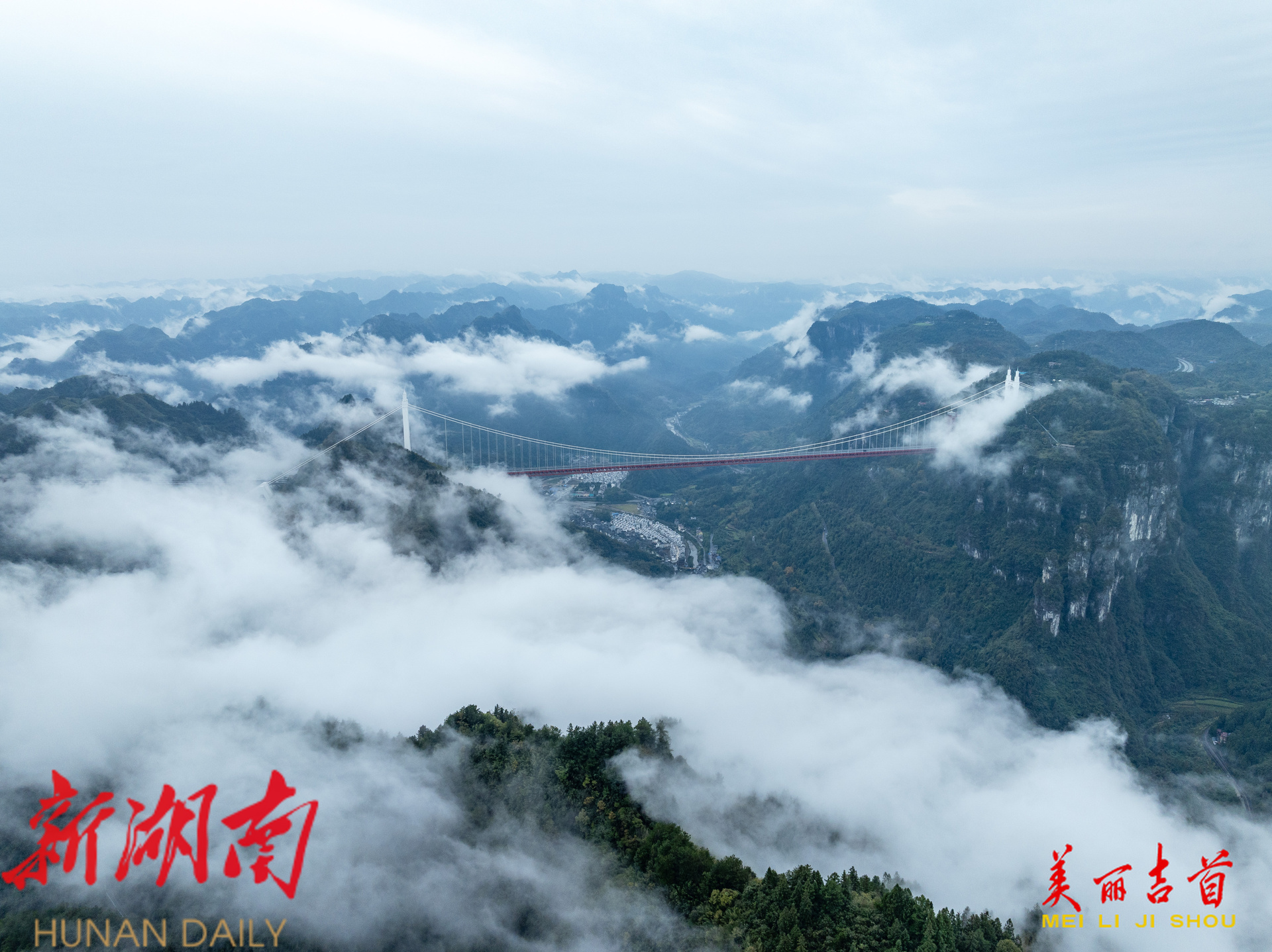 云海翻腾,矮寨大桥入画来