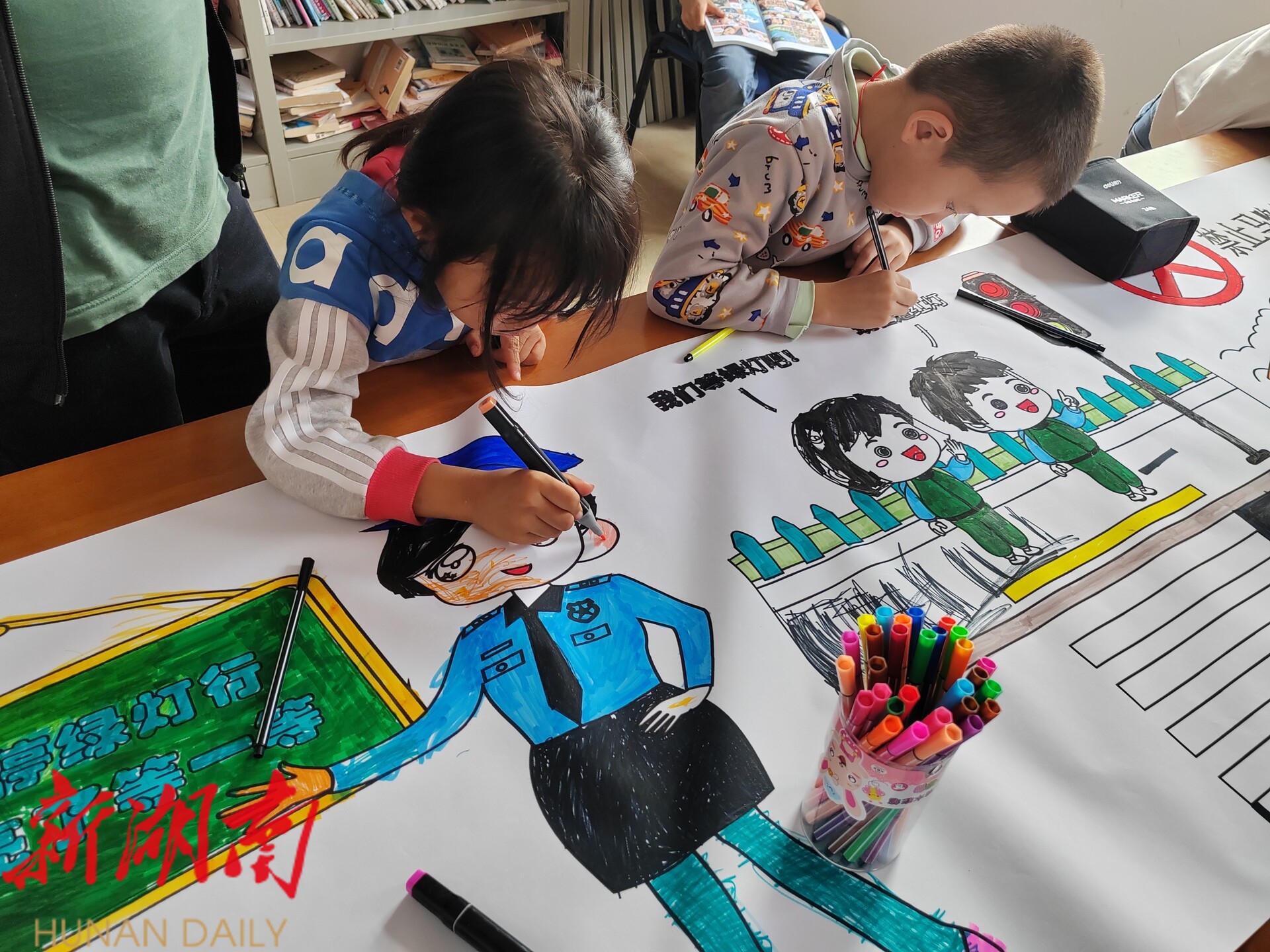活动中,“交通指令蹲”破冰游戏迅速拉近了社工与孩子们的距离,在欢快的互动中让孩子们初步熟悉交通信号指令。随后,社工结合农村出行特点,用生动易懂的语言讲解过马路、乘车等日常交通安全知识,通过真实案例提醒孩子们规避出行风险。最后,孩子们拿起画笔共同绘制交通安全长画卷,将所学知识融入创作,直观展现对交通安全的理解。