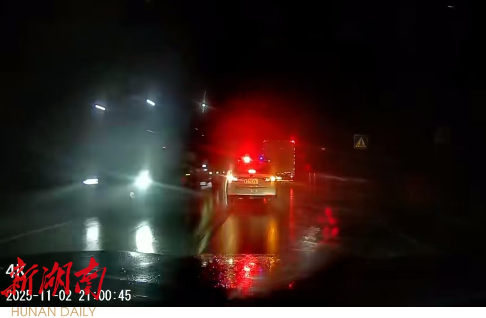 面对黑夜叠加暴雨的复杂路况,路面能见度不足50米,过往车辆通行慢行。民警一边驾驶警车在前方稳稳开道,同时用喊话器反复提醒周边车辆:“后方车辆有临盆孕妇,请大家注意避让!”声音透过雨幕传递,沿途车辆纷纷向两侧避让,一条畅通无阻的“生命通道”在车流中迅速铺开。