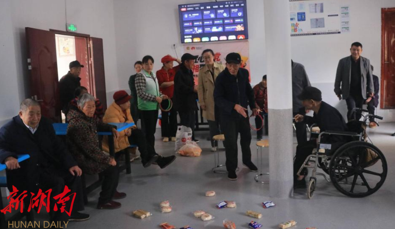 现场气氛在“趣味套圈游戏”环节迅速升温。老人们兴致勃勃地参与其中,欢笑声、喝彩声此起彼伏。毛巾、香皂、面包等实用的小礼品,不仅带来了游戏的乐趣,也传递着无微不至的关怀。