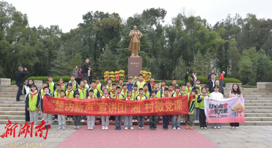 “同学们,在烽火连天的抗战岁月里,刘少奇同志以其卓越的智慧和坚定的信念,为民族解放事业立下了不朽功勋……”10月22日上午,“烽火丹心——刘少奇与抗日战争”特展迎来了花明楼中心小学的师生。“楚沩新声”宣讲团的选调生担任起讲解员,带领孩子们开启一场穿越历史烟云的红色之旅。