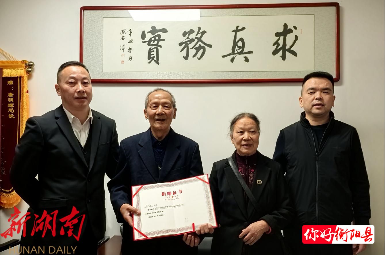 衡阳县融媒11月4日讯(通讯员:钱佳敏) 近日,县退役军人事务局举行革命军事文物捐赠证书集中颁发仪式,为烈士家属欧阳良凤、肖田方,退役军人王庆华、陈智生集中颁发捐赠证书。县退役军人事务局相关负责人及工作人员、捐赠者代表参加仪式。
