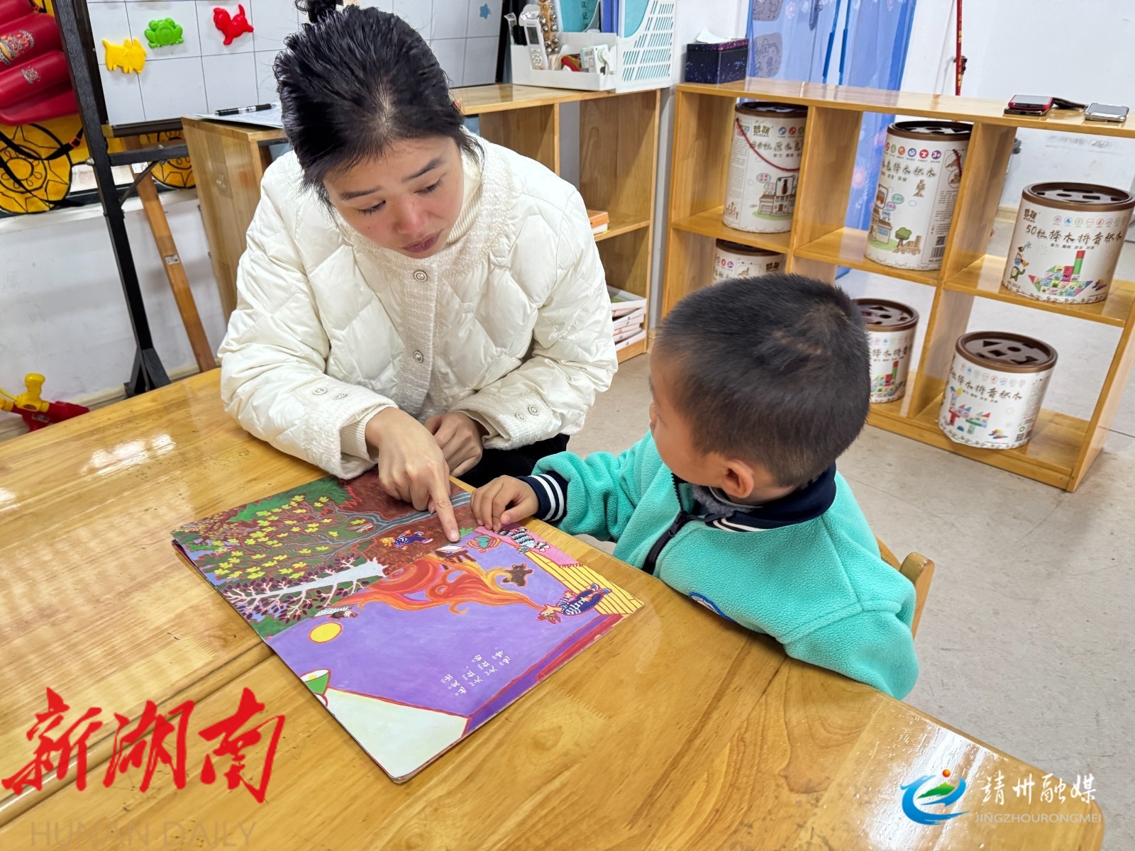 教师通过绘本对幼儿进行引导(喻小敏 摄)