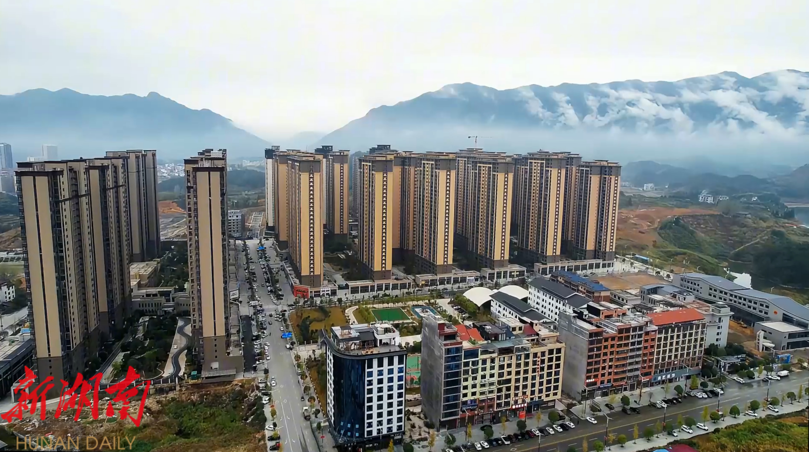 从空中俯瞰,绵延的 雪峰山 在云雾中若隐若现,青山翠影 、 村庄田园皆被轻柔的雾气环绕, 山川、 高楼 和村舍在雾气的笼罩下变得格外迷人。沿着 县城 主干道走,山峦的轮廓逐渐显现,云雾在山间缭绕, 如梦似幻,宛如人间仙境。