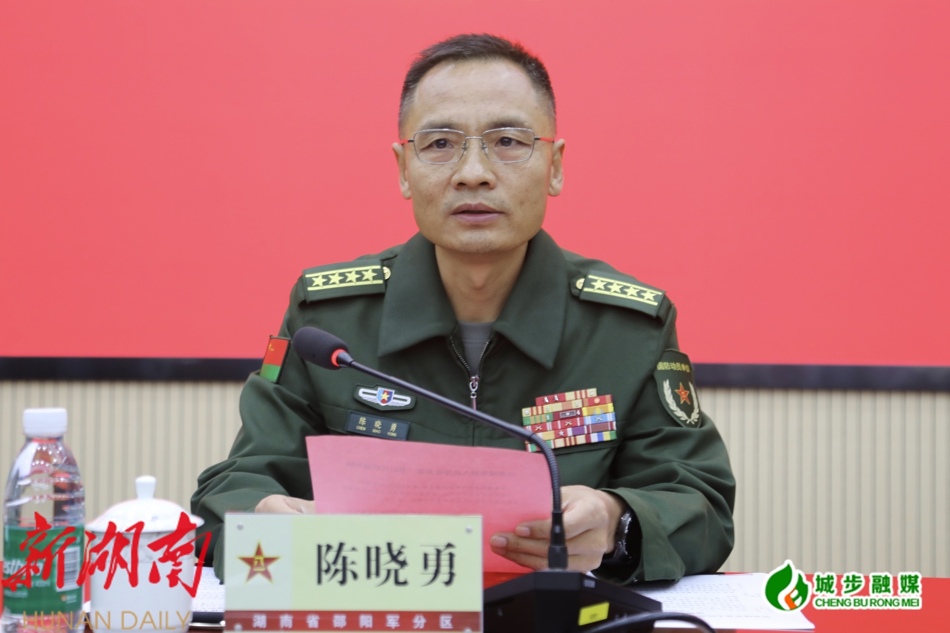 图为市委常委、军分区大校政治委员陈晓勇在会上讲话